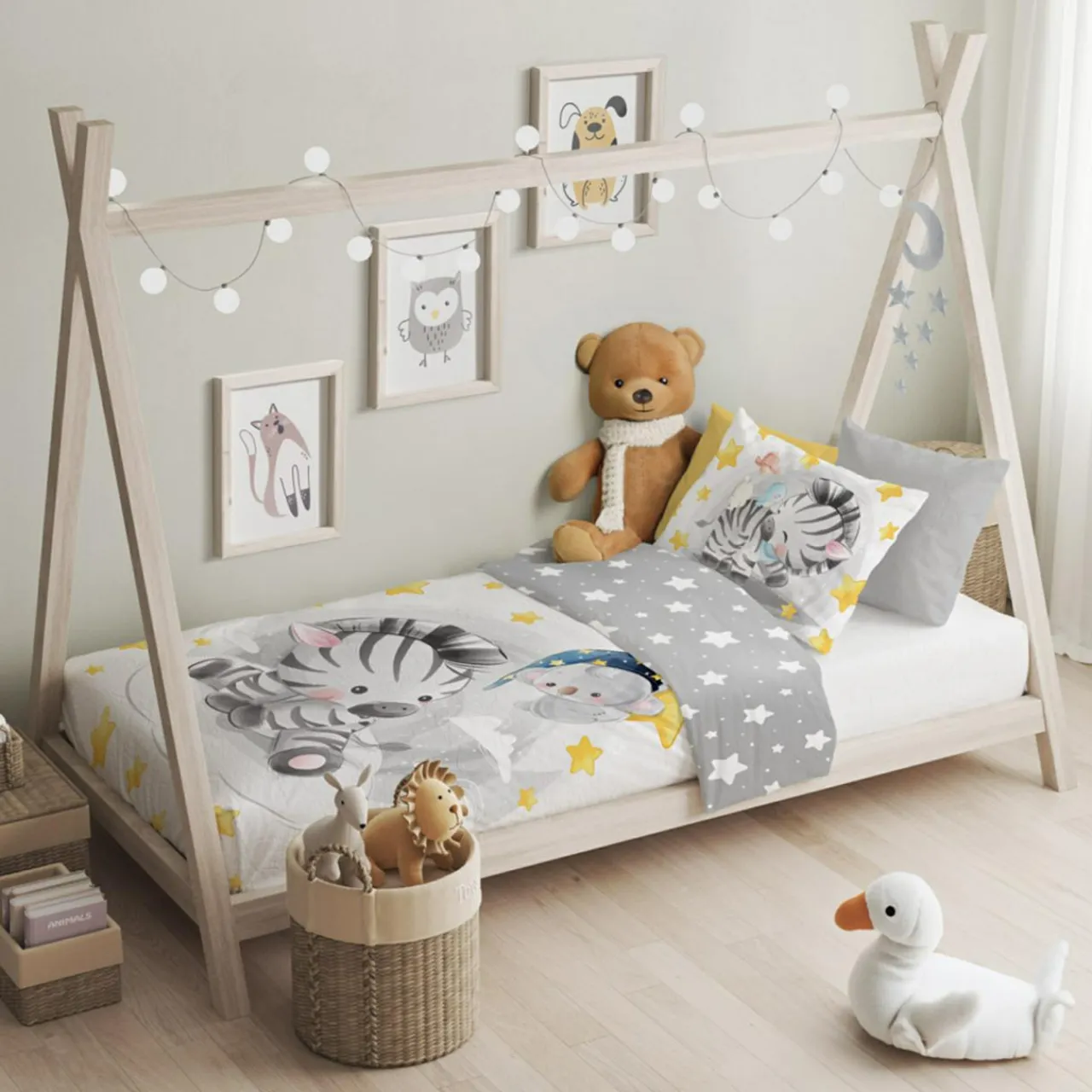 - Dzięki pościeli PRZYTULAKI ZEBRA zaakcentujesz beztroski czas dzieciństwa.