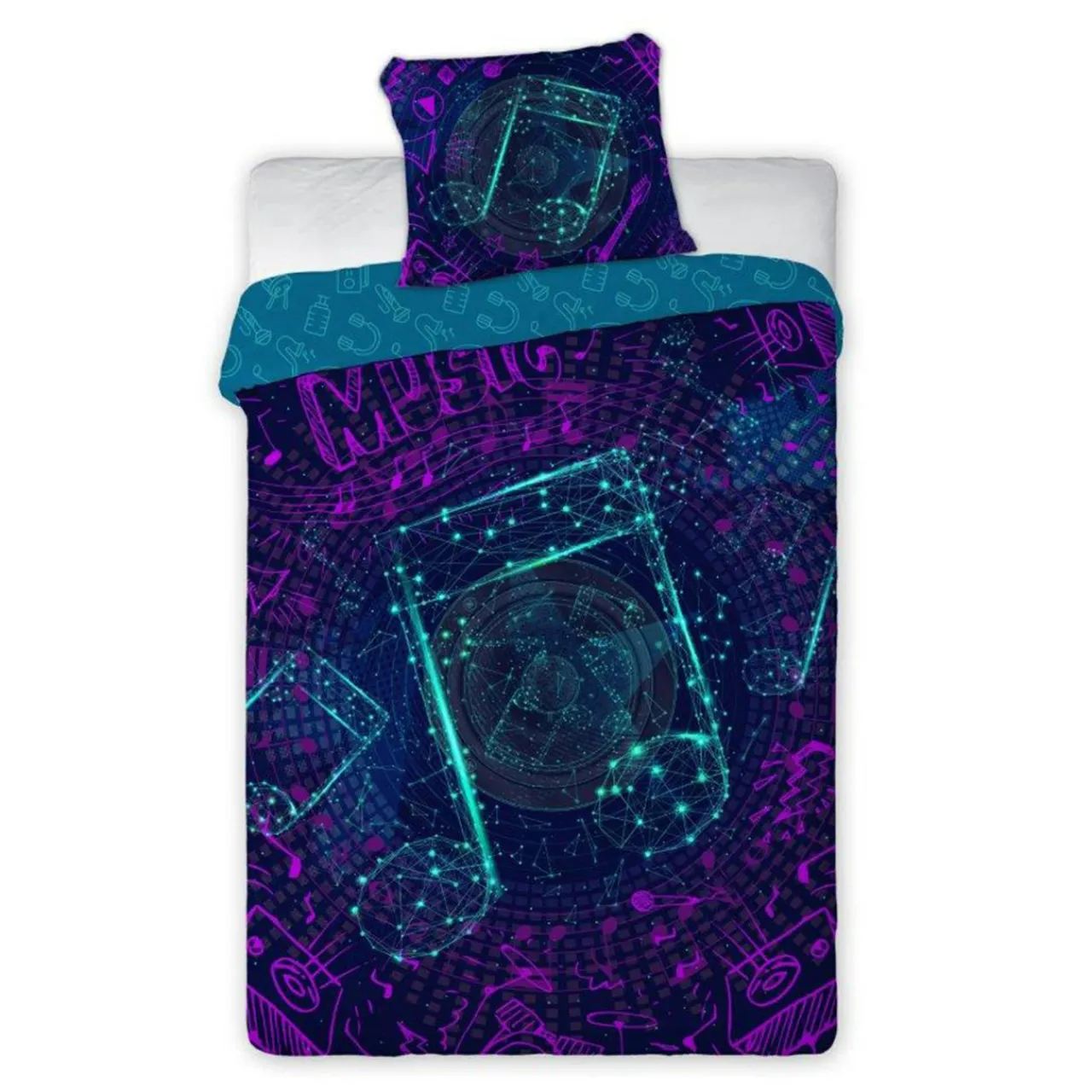 Twoja pociecha marzy o tym, by zostać gwiazdą rocka? Podaruj jej pościel NUTY FLUO. Młodzieżowy motyw nut pozwoli jej pokazać muzyczną pasję w wystroju swojego pokoju.