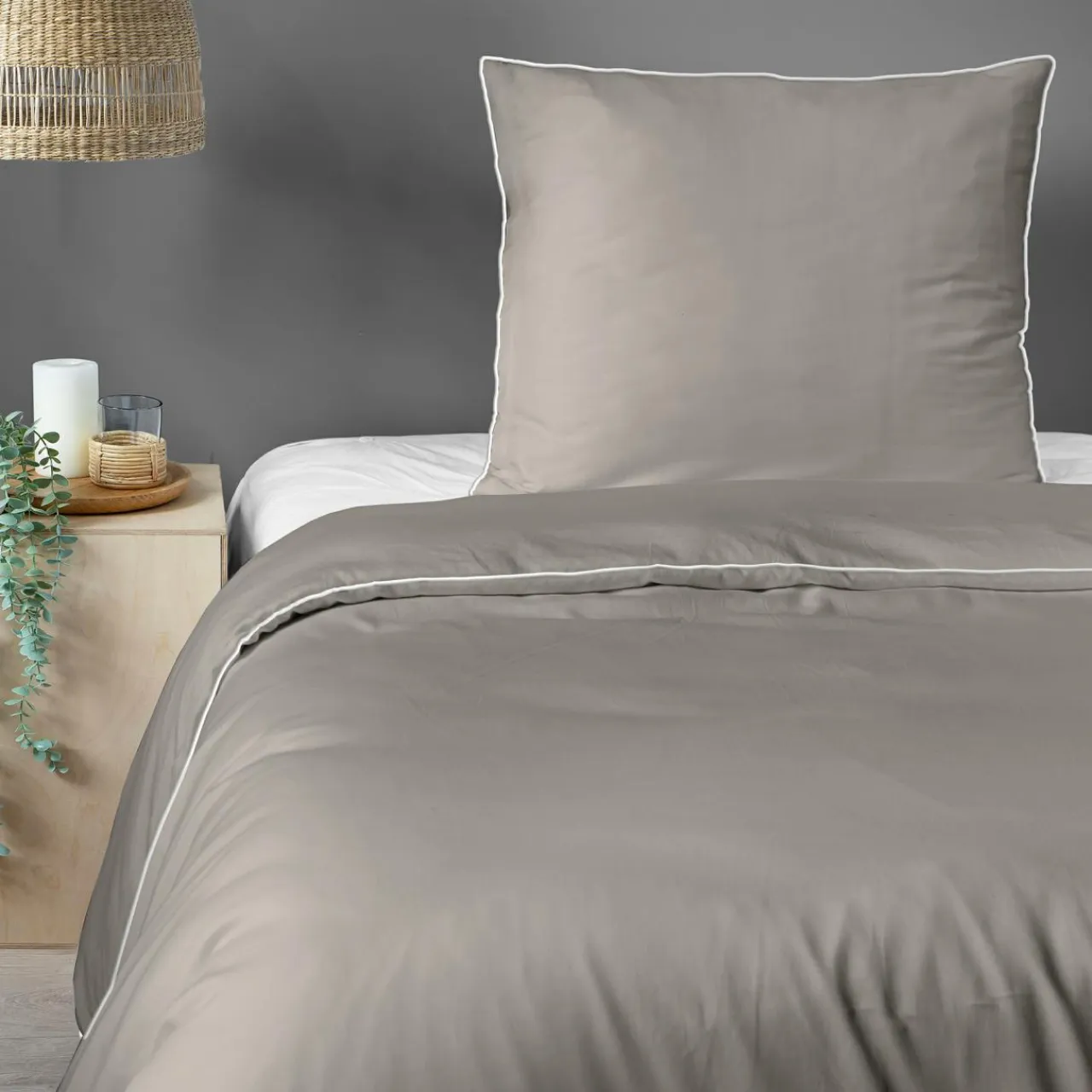 Kolekcja PURE łączy w sobie elegancję i naturalność – bawełniana pościel z makosatyny jest przewiewna i lekko się błyszczy. Dzięki jasnej lamówce wyróżni się na tle nowoczesnego wnętrza. Podkreśli schludną, uporządkowaną sypialnię.
