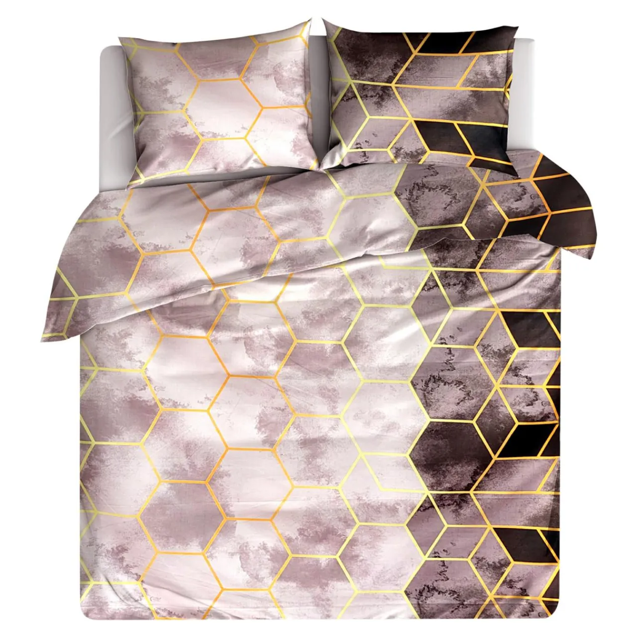 Bawełniana pościel HEXAGON sprosta potrzebom amatorów snu w komfortowych warunkach. Jej ładny wzór oraz uniwersalna kolorystyka wprowadzą do sypialni ciepło i przytulny klimat.