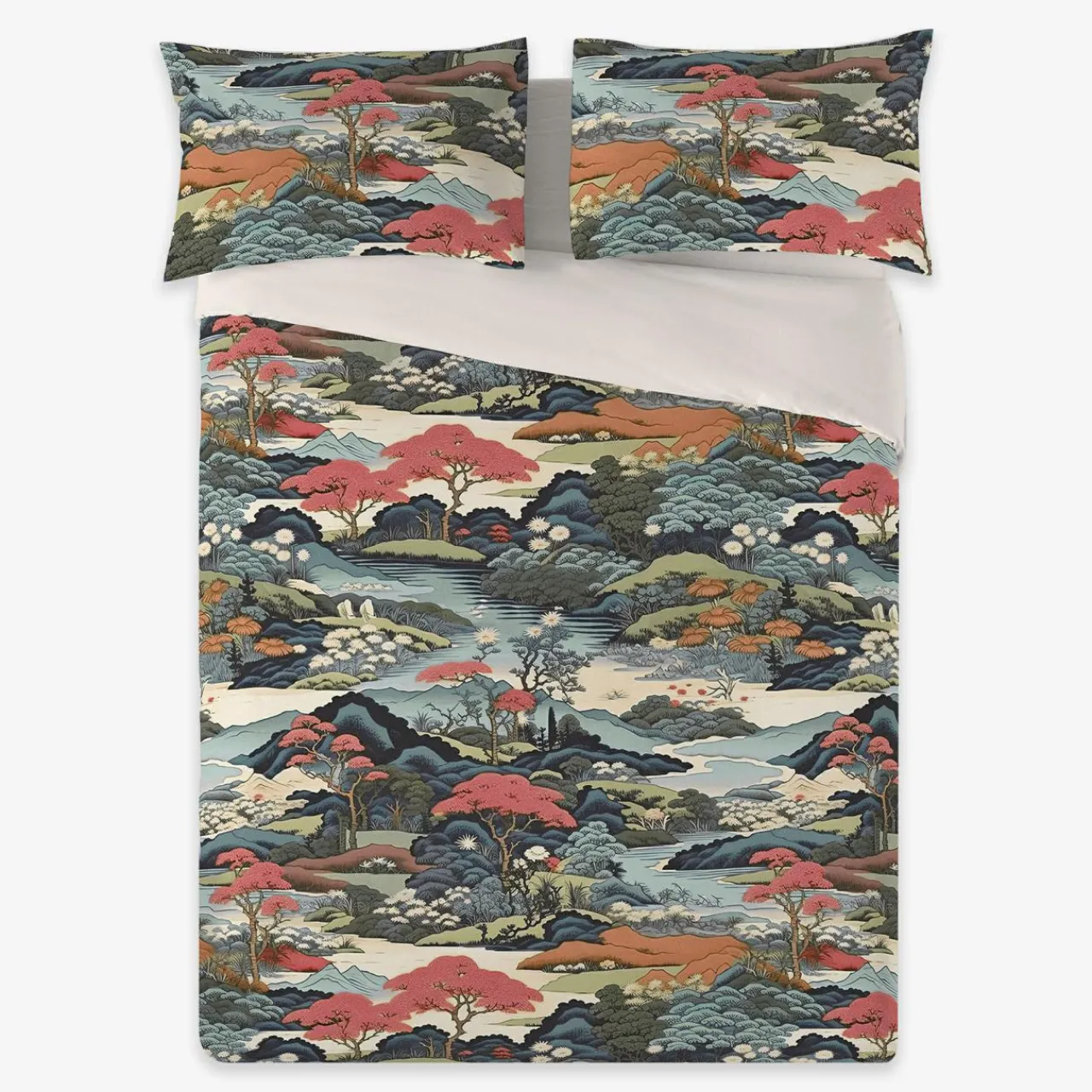 Kolorowy pejzaż wizualnie ożywi wnętrze nowoczesnej lub orientalnej sypialni.