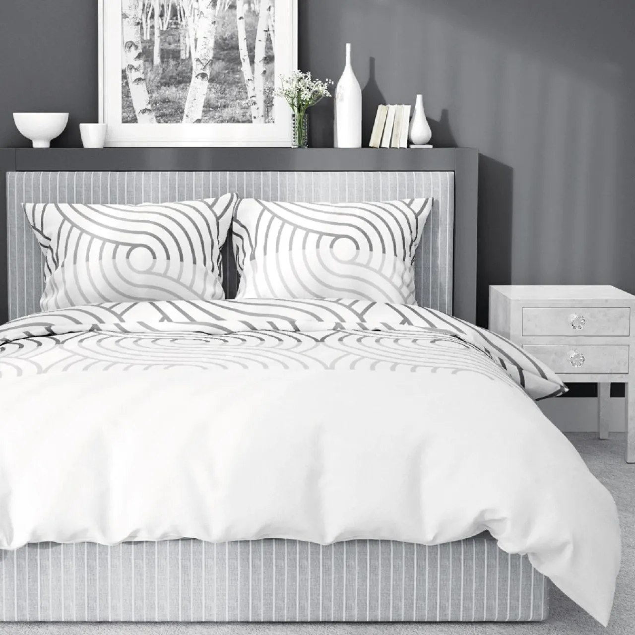 Biała pościel HOME SATIN o geometrycznym wzorze rozjaśni i uatrakcyjni Twoją sypialnię w stylu nowoczesnym lub skandynawskim.