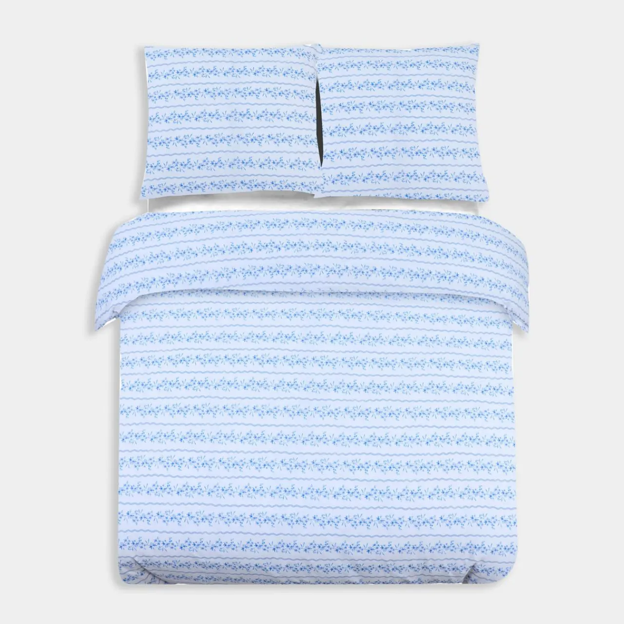 Bawełniana pościel GIULIA zaakcentuje sypialnię w stylu rustykalnym – drobne niebieskie kwiatki na białym tle odświeżą aranżację. Wnętrze zyska przytulny akcent.