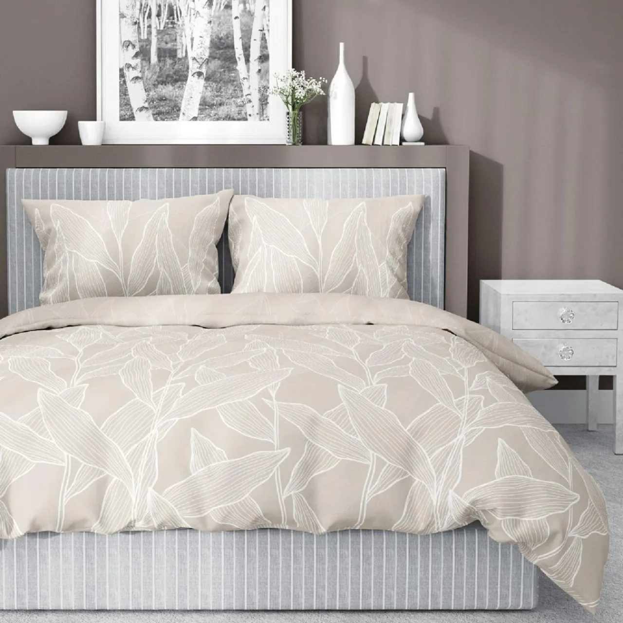 - Roślinny motyw o białym kolorze doda aranżacji naturalności