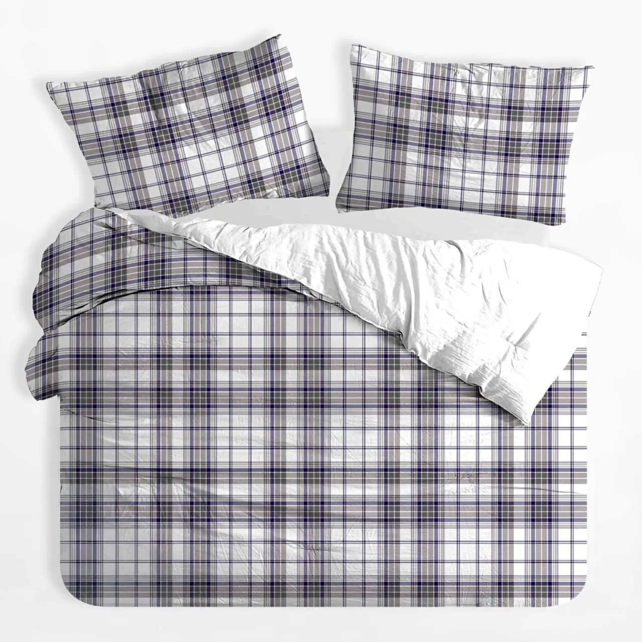Pościel BOHOO w szarą kratę uzupełniona jest o fioletowy akcent. Razem tworzą wzór, którym uzupełnisz sypialnię w nowoczesnym stylu lub w okresie świątecznym.