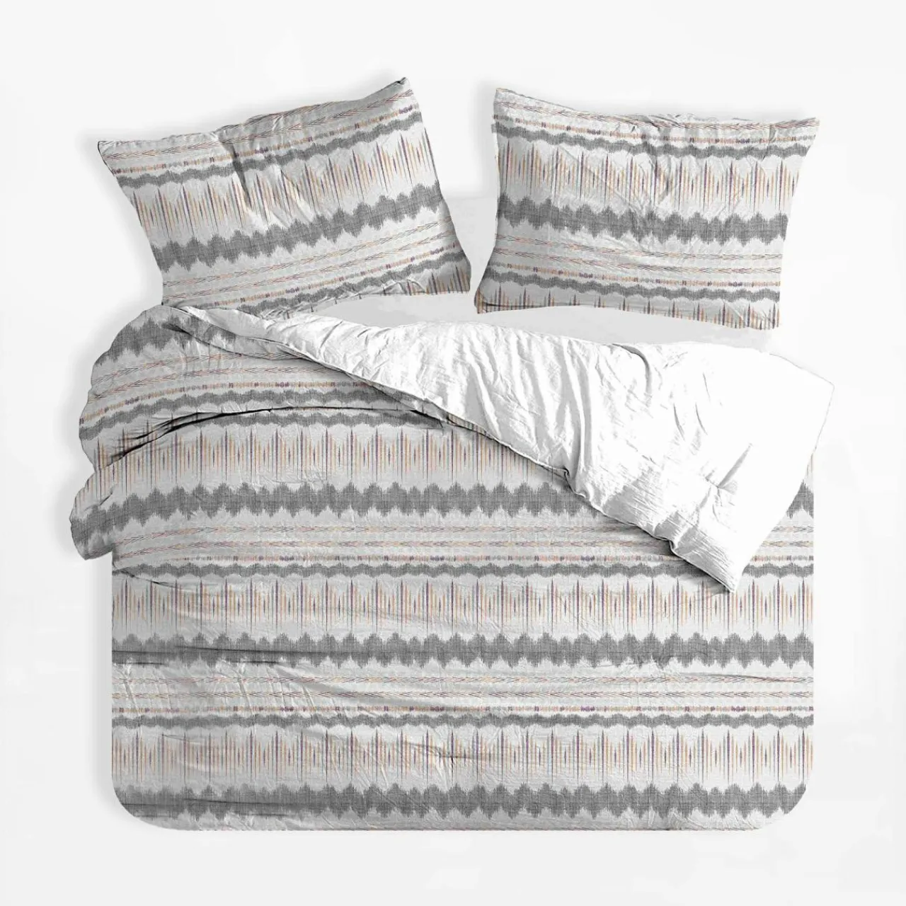 Pościel BOHOO w szaro-pomarańczowe wzory dopełni sypialnię w nowoczesnym stylu.