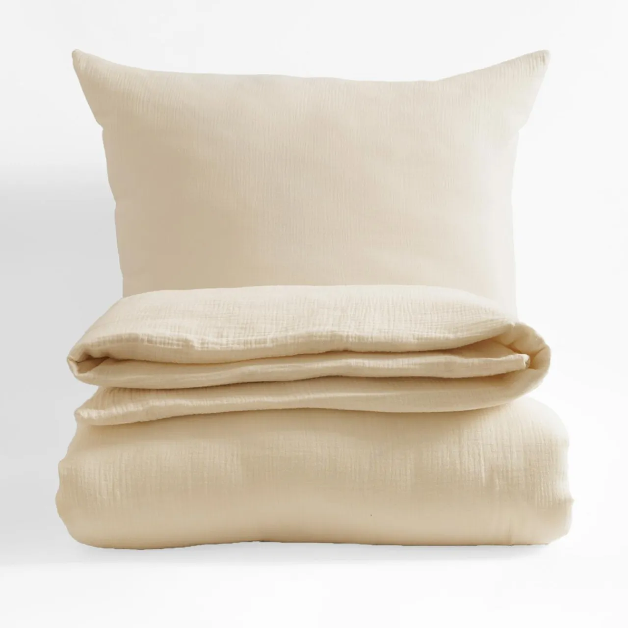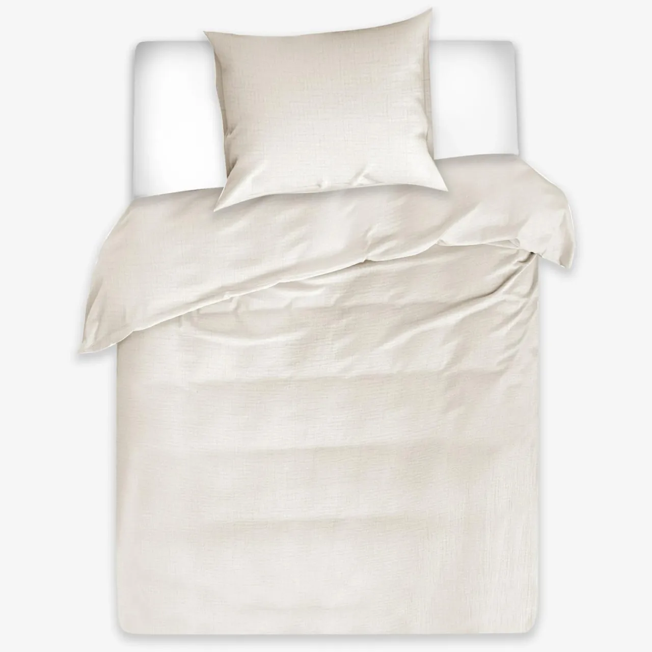 Jasnobeżowa pościel muślinowa wpisze się w nowoczesne wnętrze.