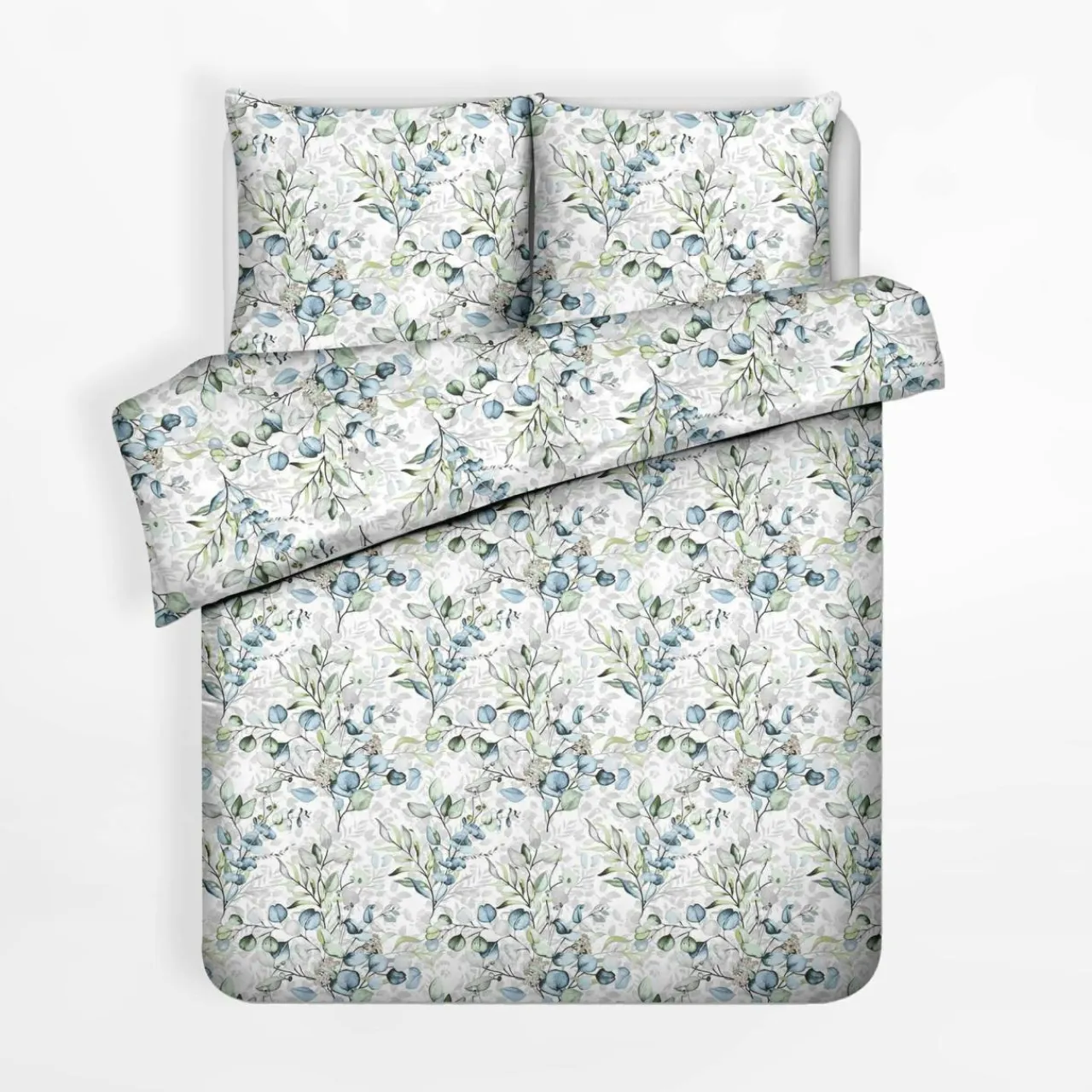 Pościel w niebieskie i zielone liście PRIMERO wpisze się nowoczesny wystrój sypialni