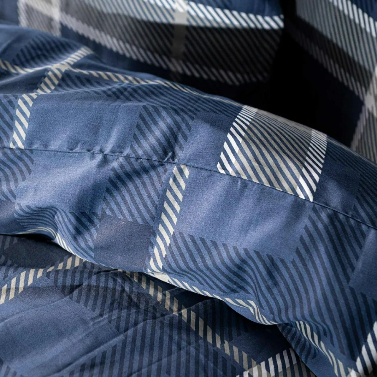 Kolekcja KADENA to propozycja dla miłośników klasycznych wzorów, które nigdy nie wychodzą z mody – granatowa pościel w kratę wizualnie odświeży i ociepli Twoją sypialnię.