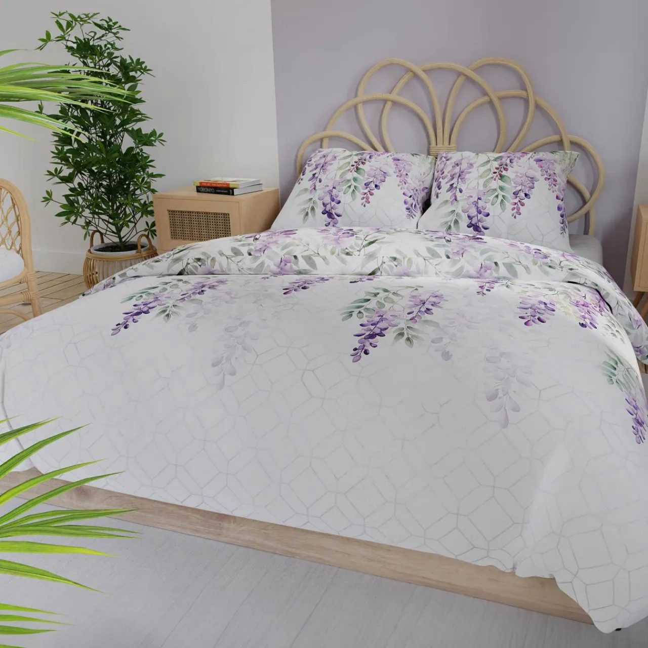 Pościel bawełniana o satynowym splocie LAVANYA podkreśli naturalny wystrój i drewniane meble.