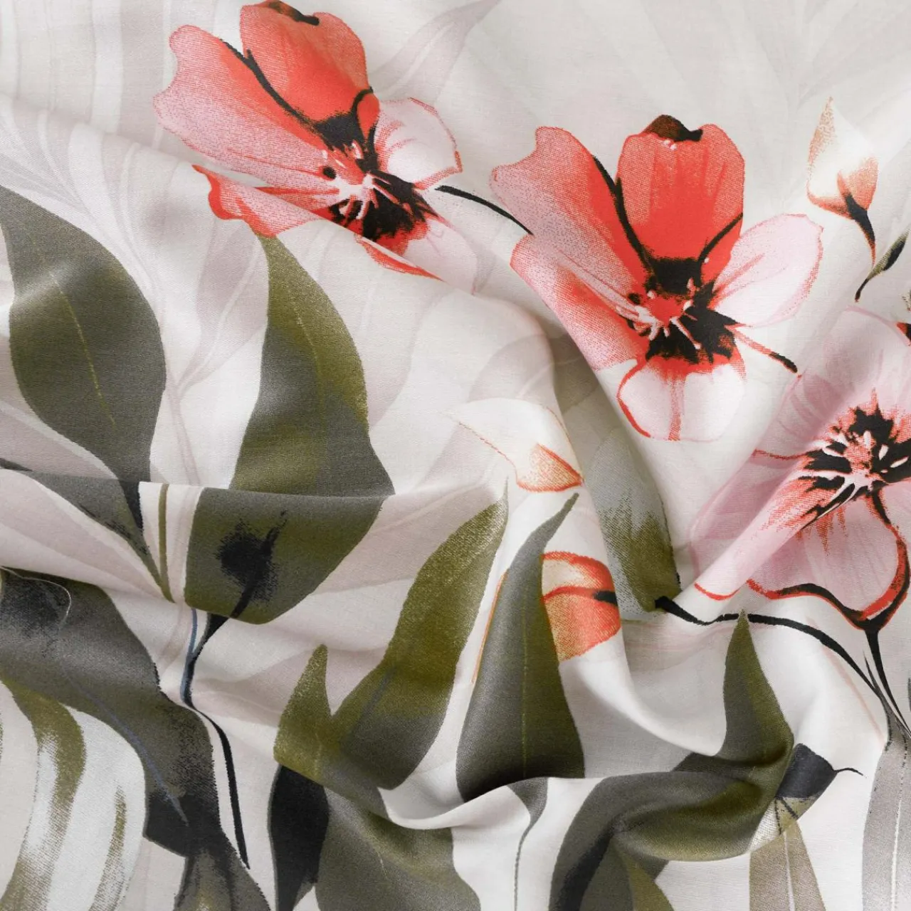 Bawełniana pościel o satynowym splocie z kolekcji PARADIS pasuje do sypialni w stylu urban jungle.
