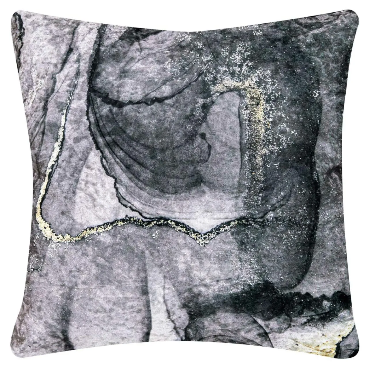 Poduszka dekoracyjna GEODY CRUSH ze wzorem imitującym kamień ze złotymi smugami sprawdzi się jako dodatek na kanapie, w sypialni bądź na tarasie.