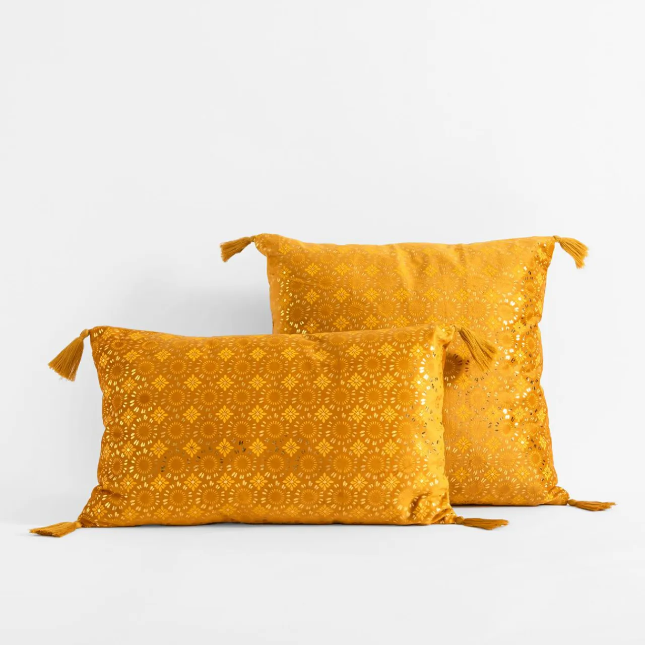 Ozdobna poszewka z kolekcji WAYNE ze złotym wzorem ozdobi salon oraz sypialnię. Lśniący wzór przykuje uwagę.