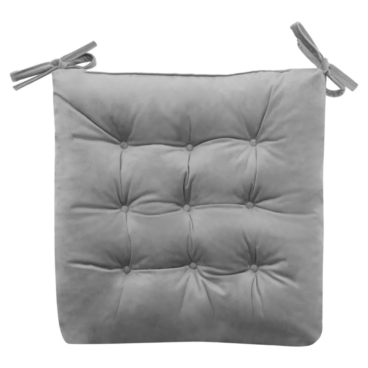 Estetyczne pikowanie i elegancka, welurowa tkanina w szarym kolorze urozmaicą aranżację kuchni, jadalni czy pokoju dziennego.