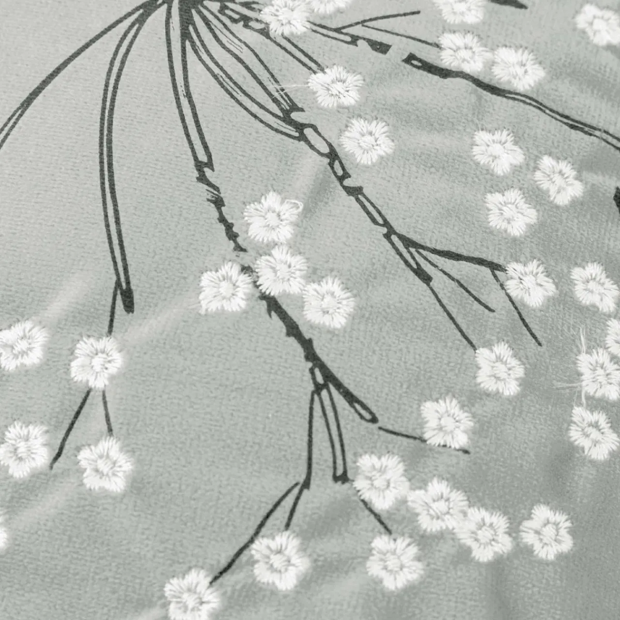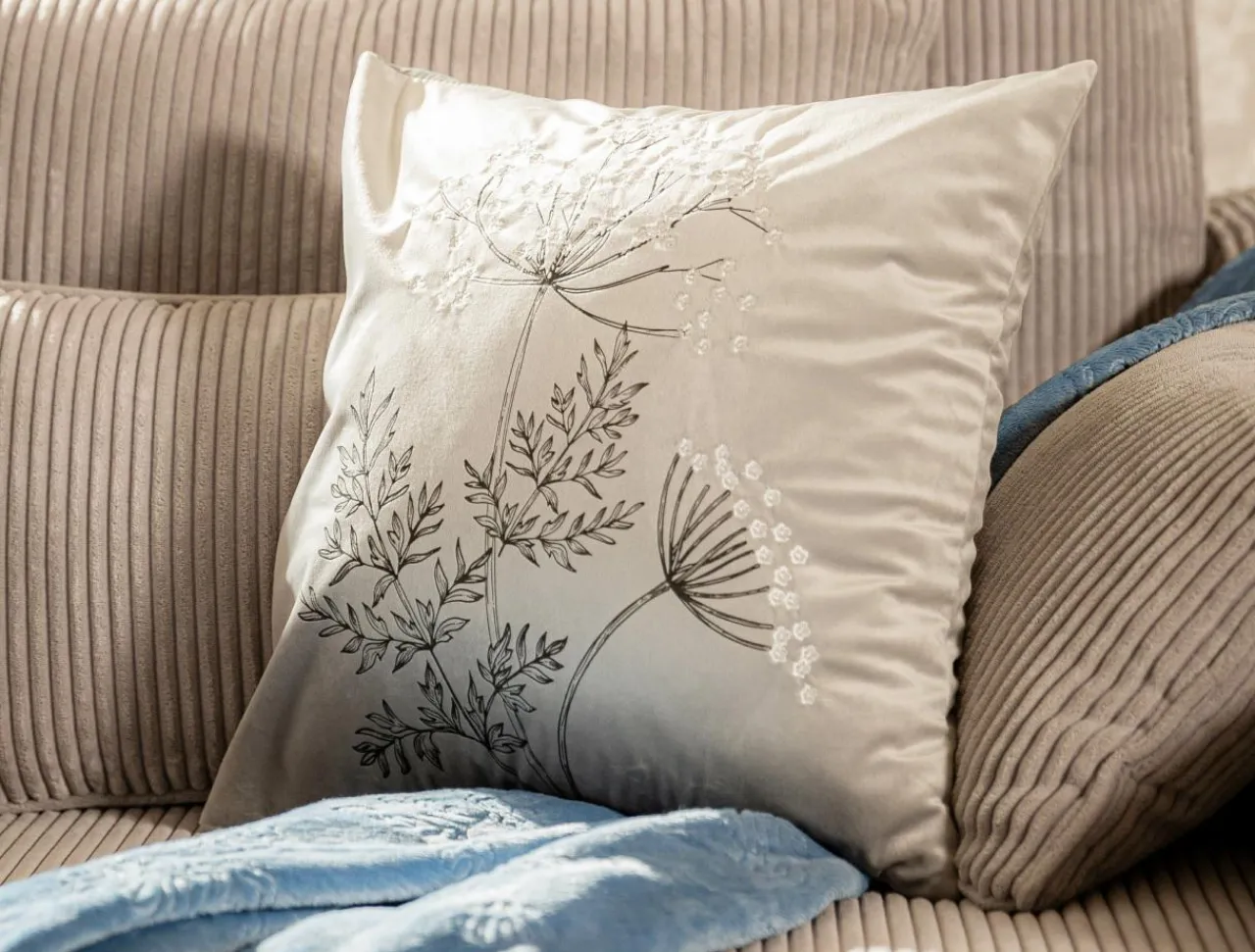 Poszewki I Poduszki Dekoracyjne|Estetica Poszewka welurowa z haftem jasnoszara ANISE 45×45 cm
