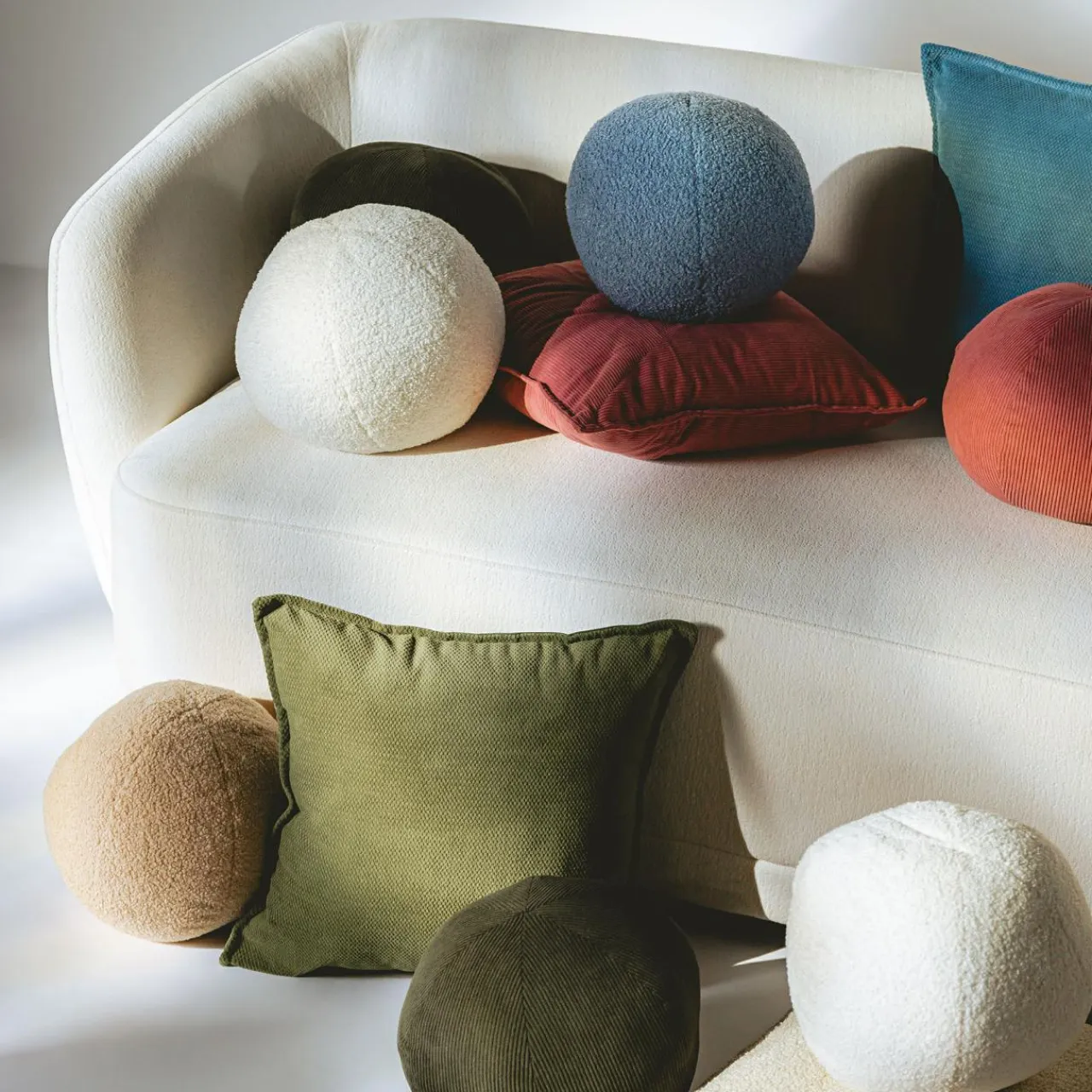 Okrągła, zielona poduszka BALLIN wyróżni się na tle szarej lub kremowej sofy. Zyskasz modny, nowoczesny dodatek do swojego wnętrza.