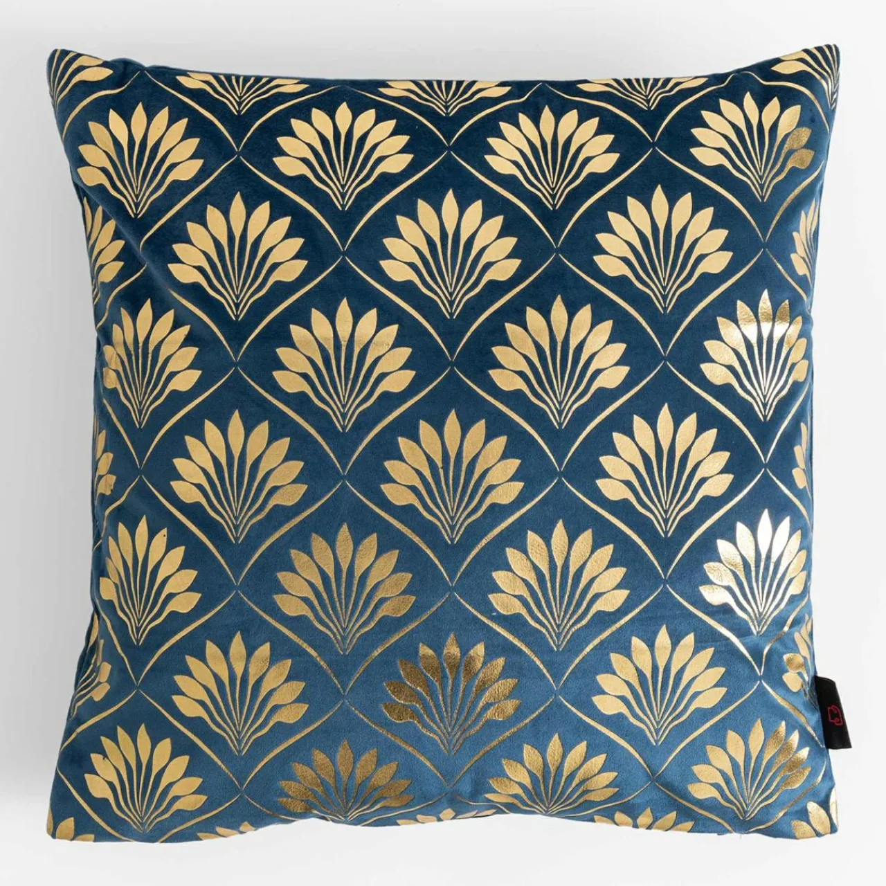 Ciemnoniebieska poszewka DEKAR podkreśli wystrój wnętrza w stylu art deco. Złoty motyw lekko połyskuje – z pewnością przykuje uwagę.