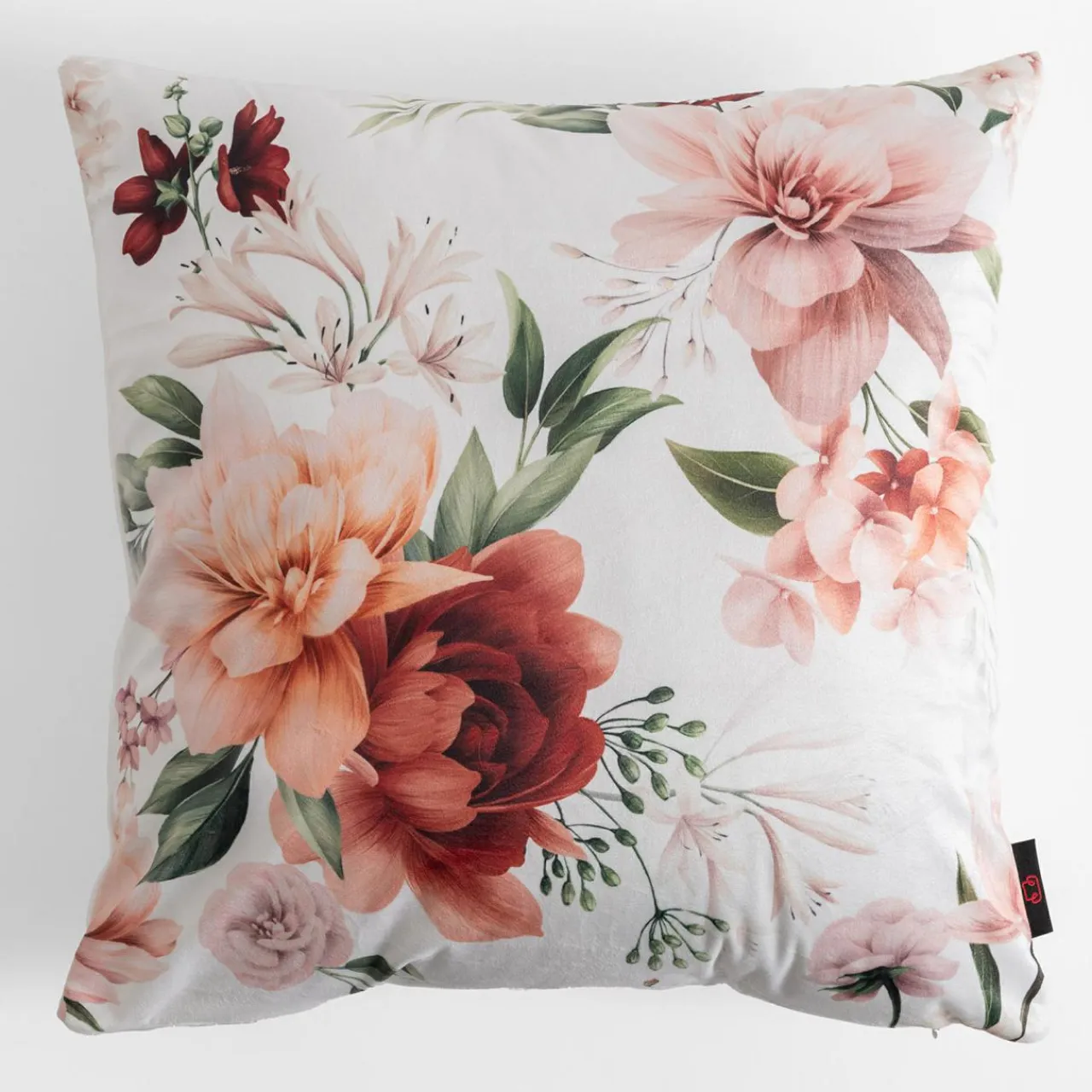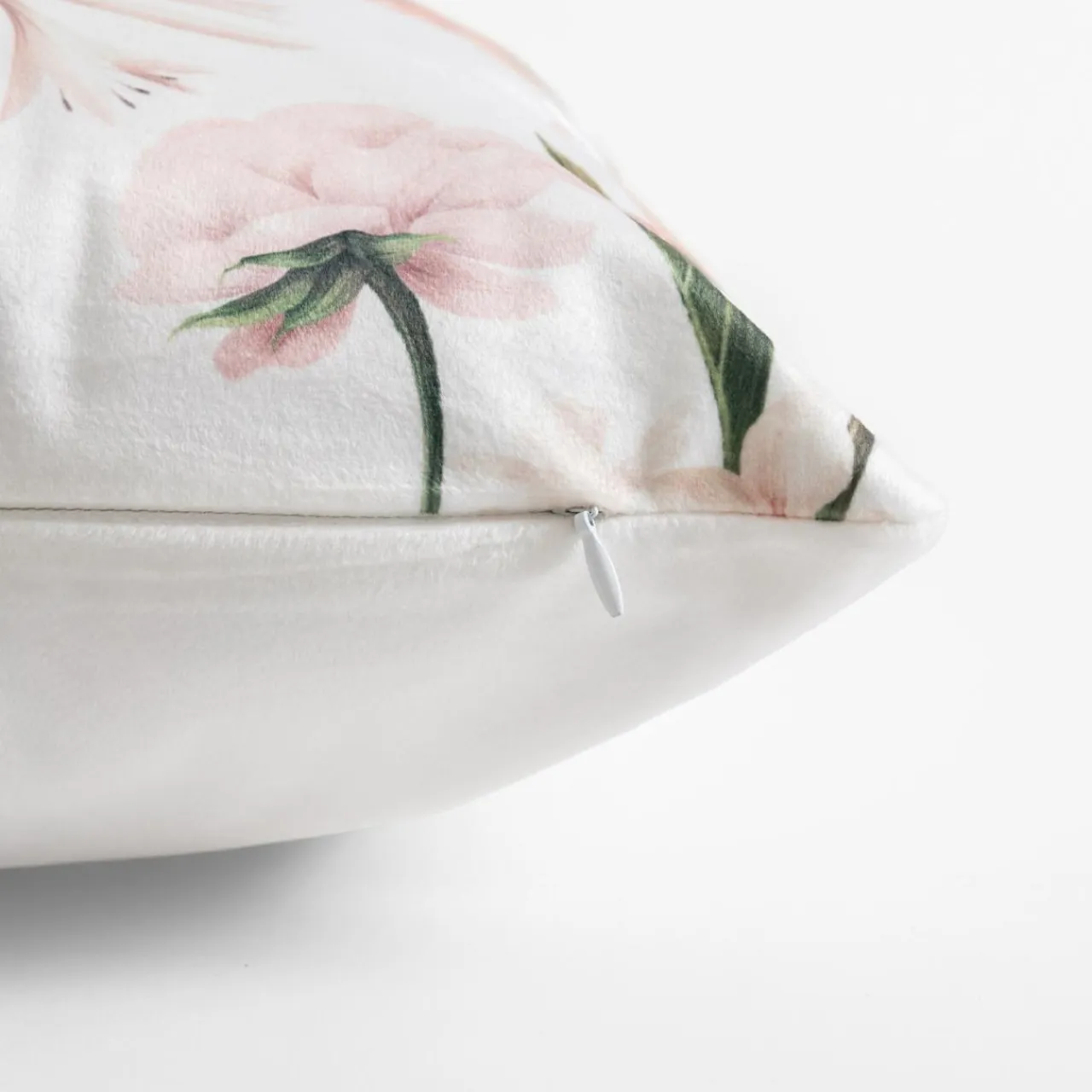 Biała poszewka w kwiaty OLIVE rozjaśni wnętrze salonu lub sypialni. Poliestrowa tkanina jest miękka w dotyku.