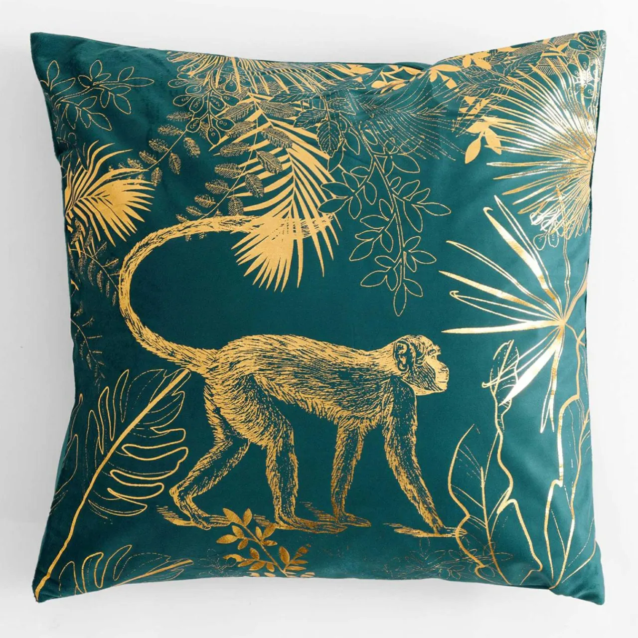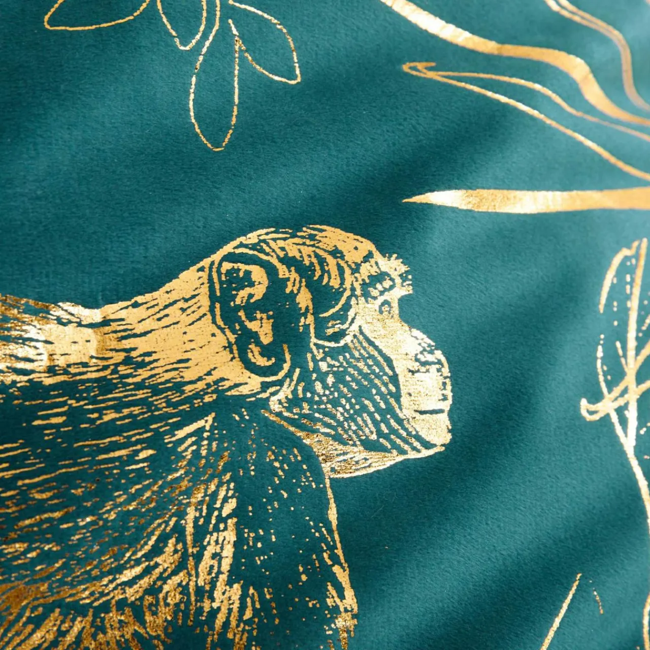 Dekoracyjna poszewka z kolekcji AIKA ze złotym wzorem małpy zaakcentuje elegancką aranżację glamour.