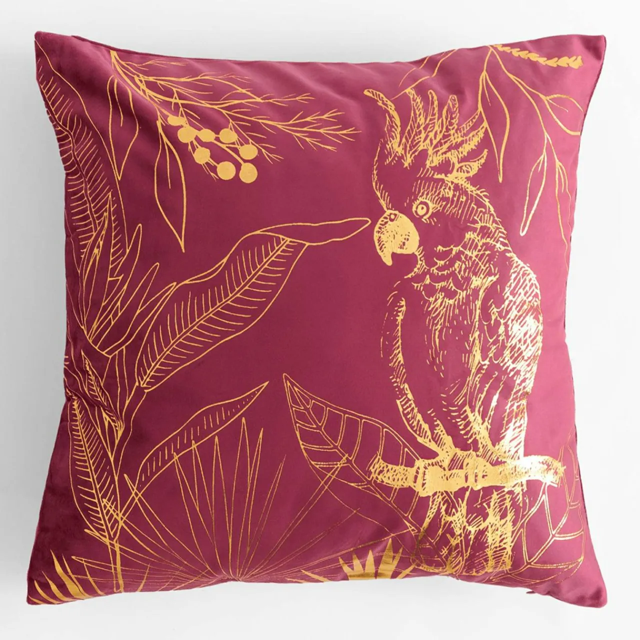 Miękka poszewka AIKA ze złotym wzorem papugi podkreśli elegancką aranżację glamour.