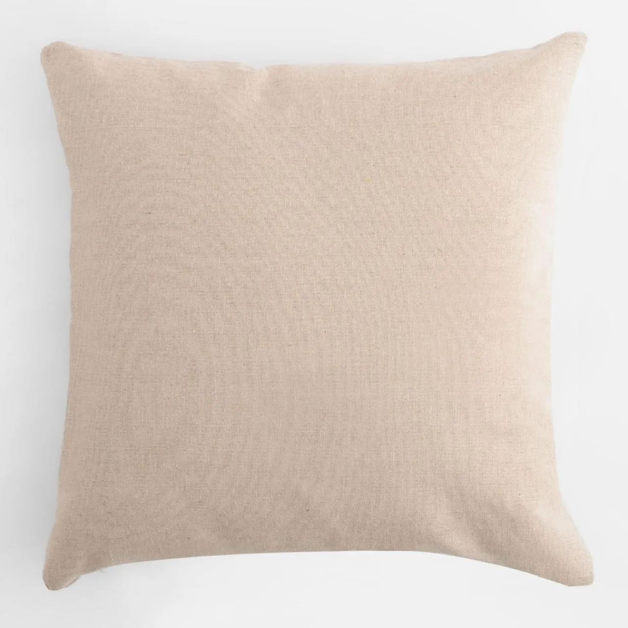 - Beżowa poszewka z kolorowym wzorem przykuje uwagę na tle mebli o ciemnym odcieniu.