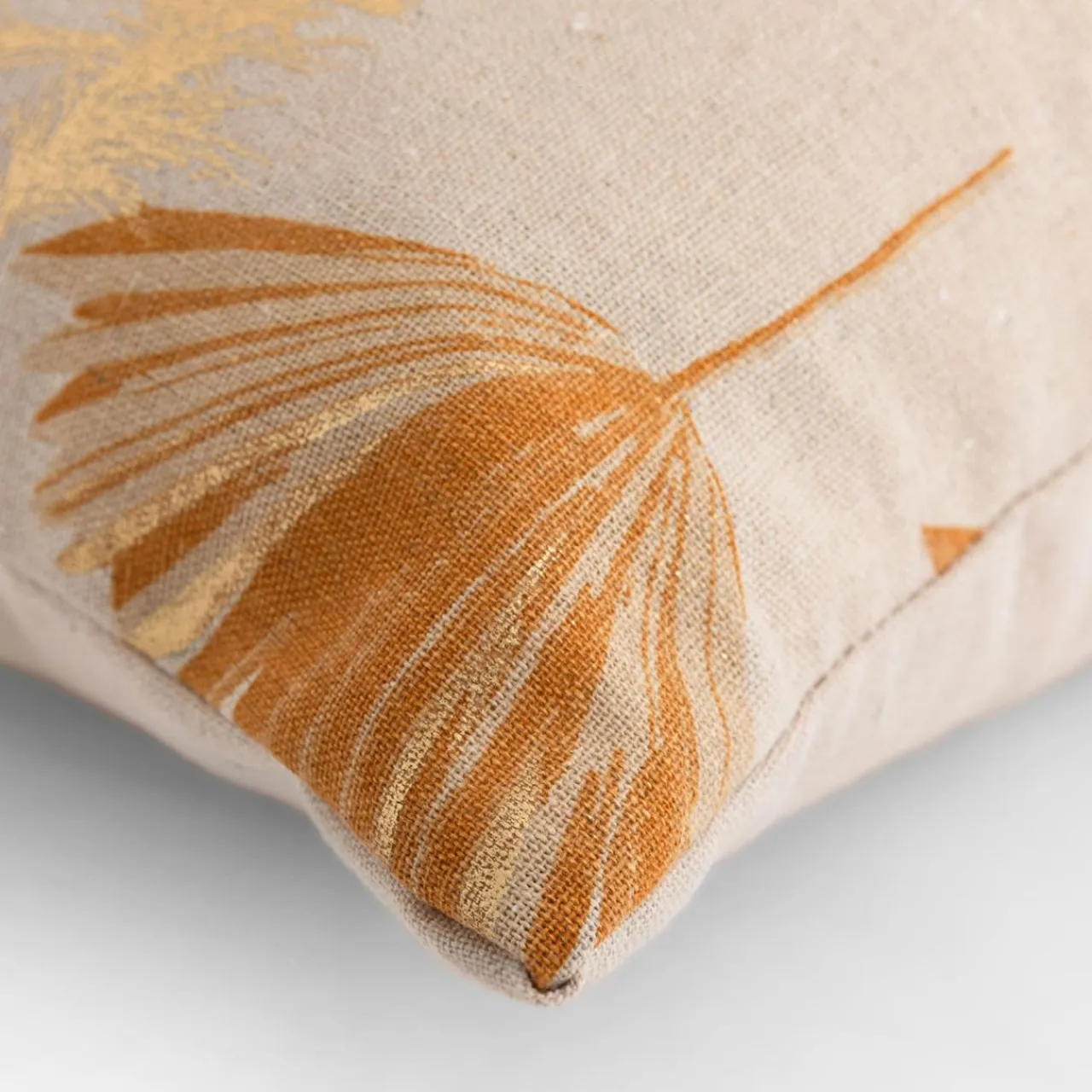 Żółte liście na jasnej poszewce IKORA pomogą ożywić aranżację w salonie lub sypialni.