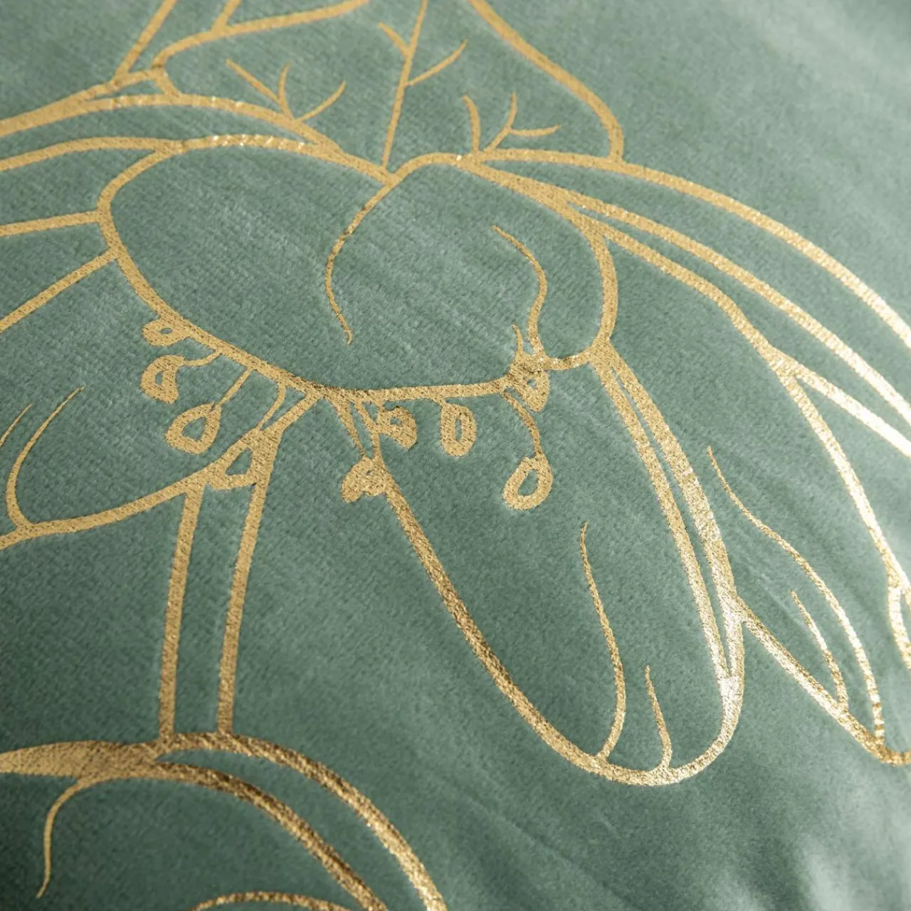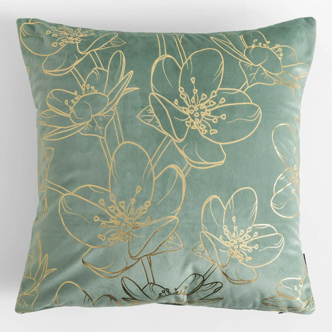 Poszewka CASILA o miętowym kolorze przykuje Twoją uwagę złotym, kwiatowym wzorem.