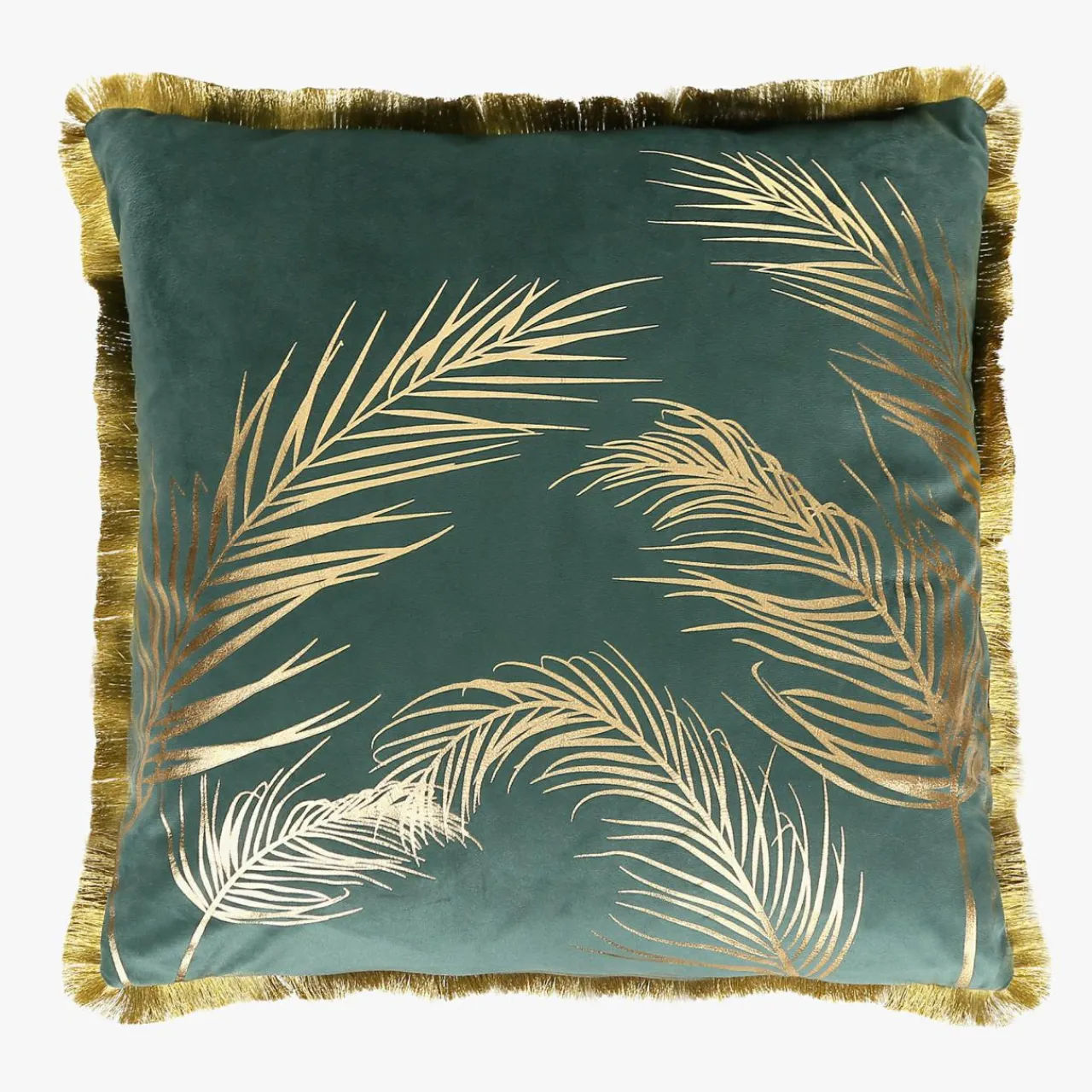 Zielona poszewka w złote liście YVES stanie się atrakcyjną dekoracją Twojego wnętrza. Ozdobi salon oraz sypialnię w stylu glamour.