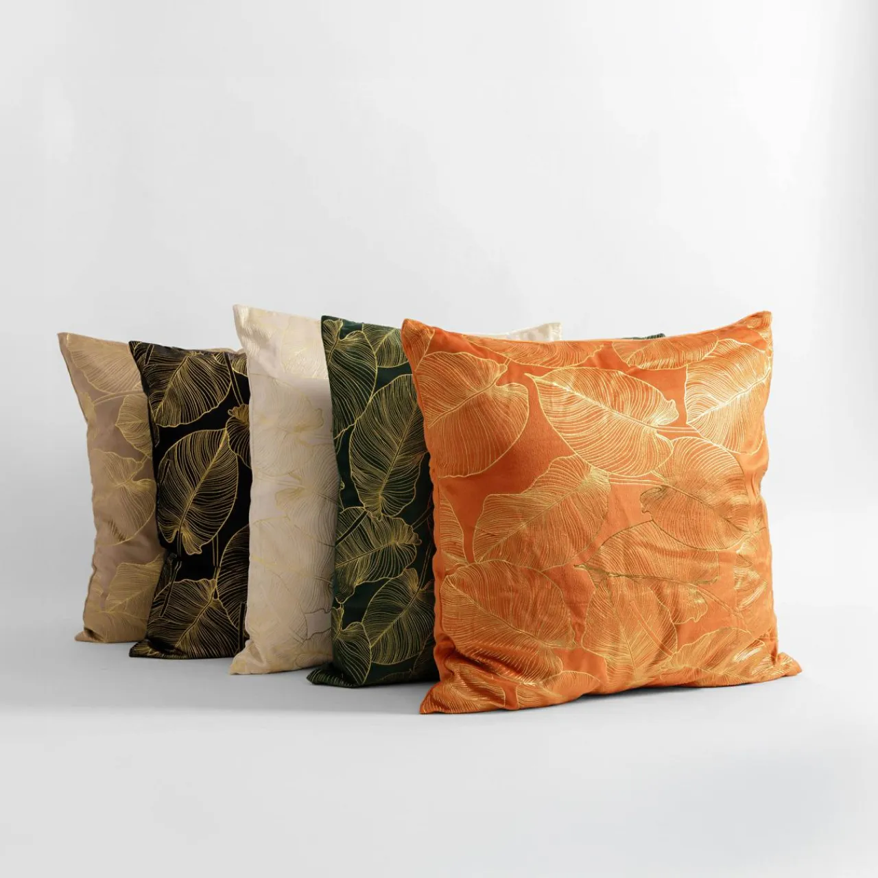 Złoty roślinny wzór w liście znajduje się po jednej stronie poszewki.