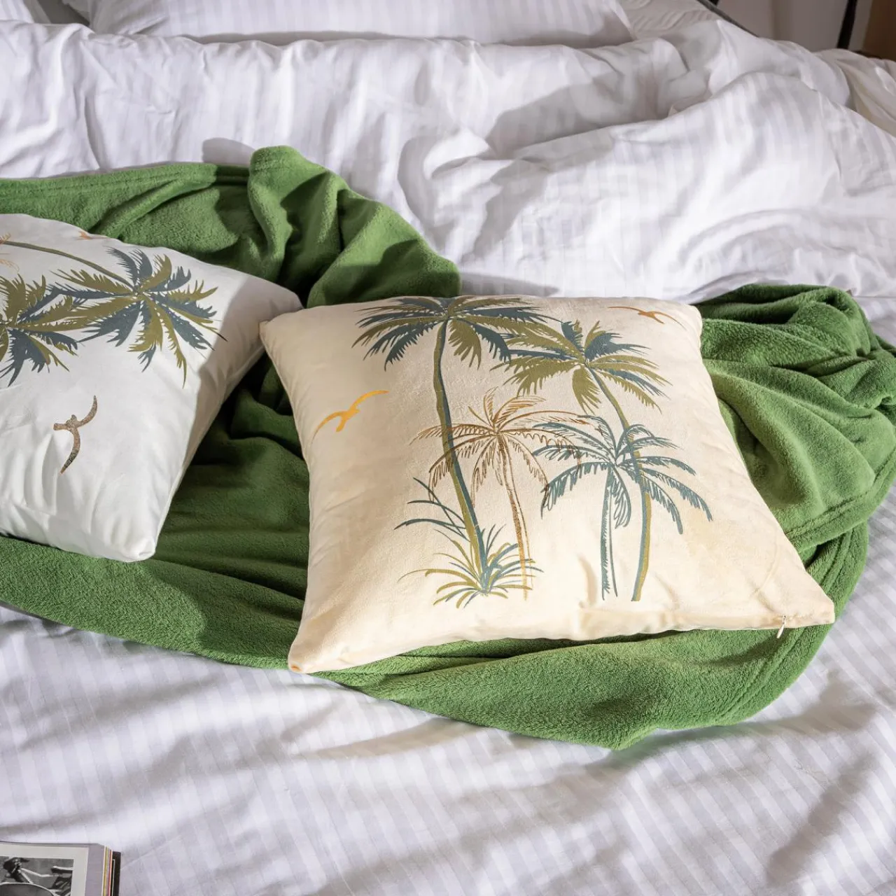 - Dekoracja wyróżni się na kanapie lub narożniku o ciemnym odcieniu.