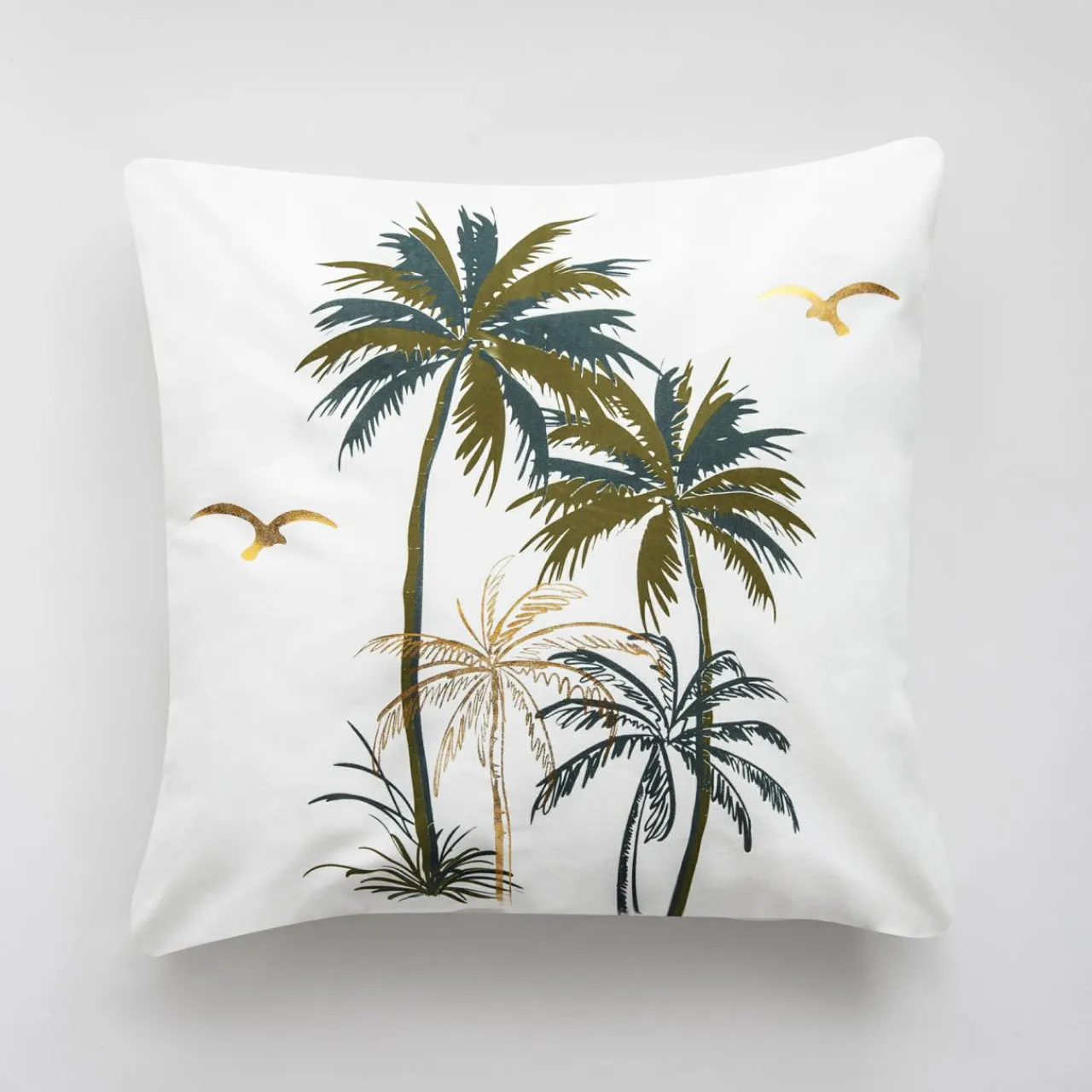 - Złote i zielone palmy na białym tle przyciągną uwagę.