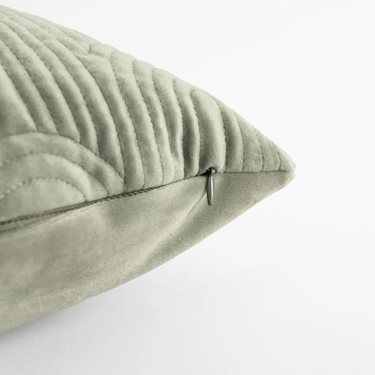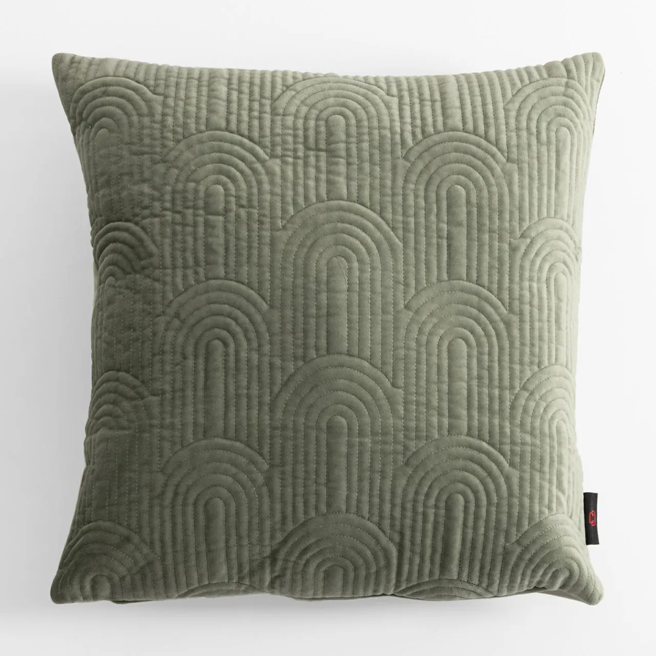 Zielona poszewka JONES przykuje uwagę ozdobnym geometrycznym wzorem. Wpisze się w skandynawski wystrój na tle szarej sofy i białych ścian.