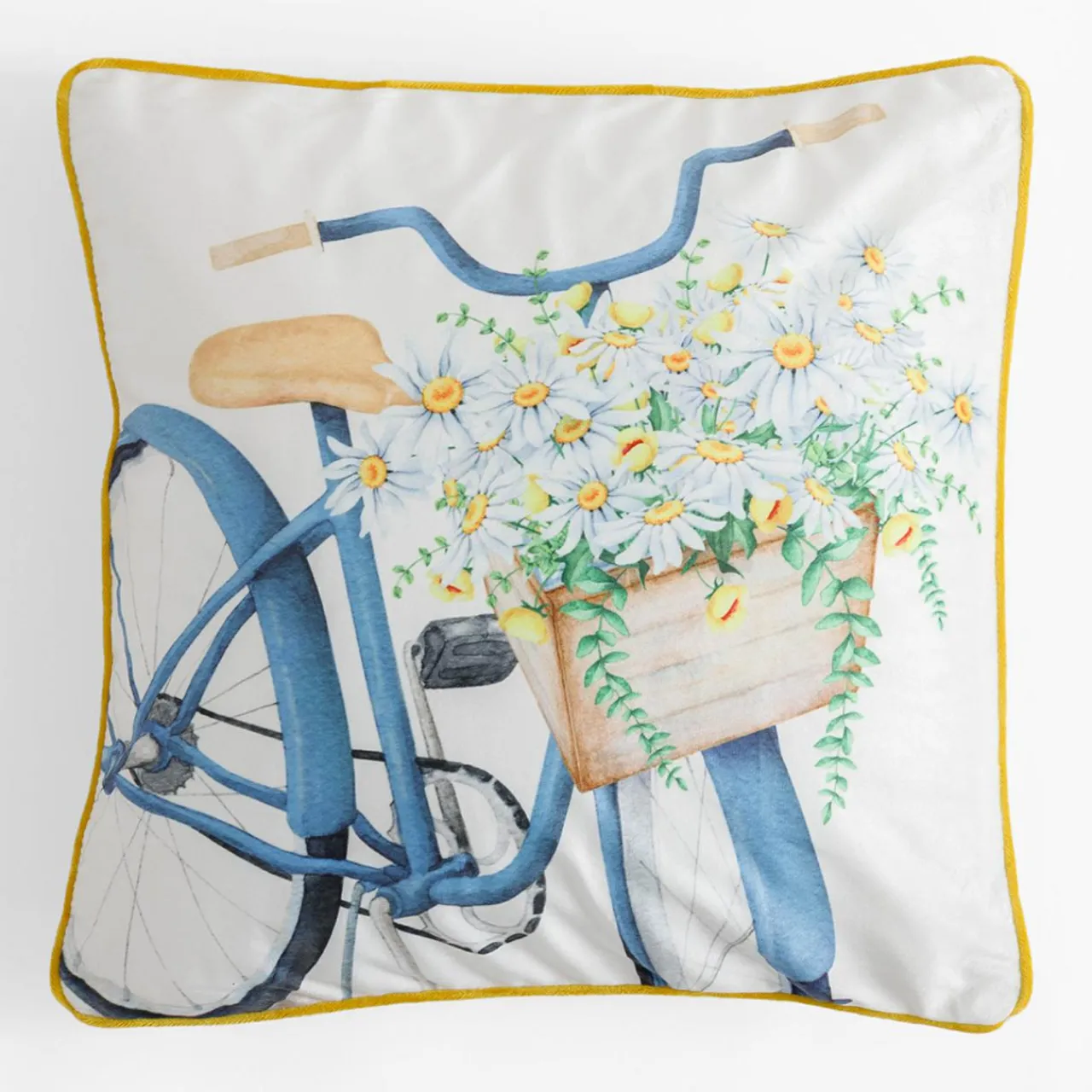 - Żółte i niebieskie odcienie poszewki sprawią, że aranżacja zyska pozytywny akcent.
