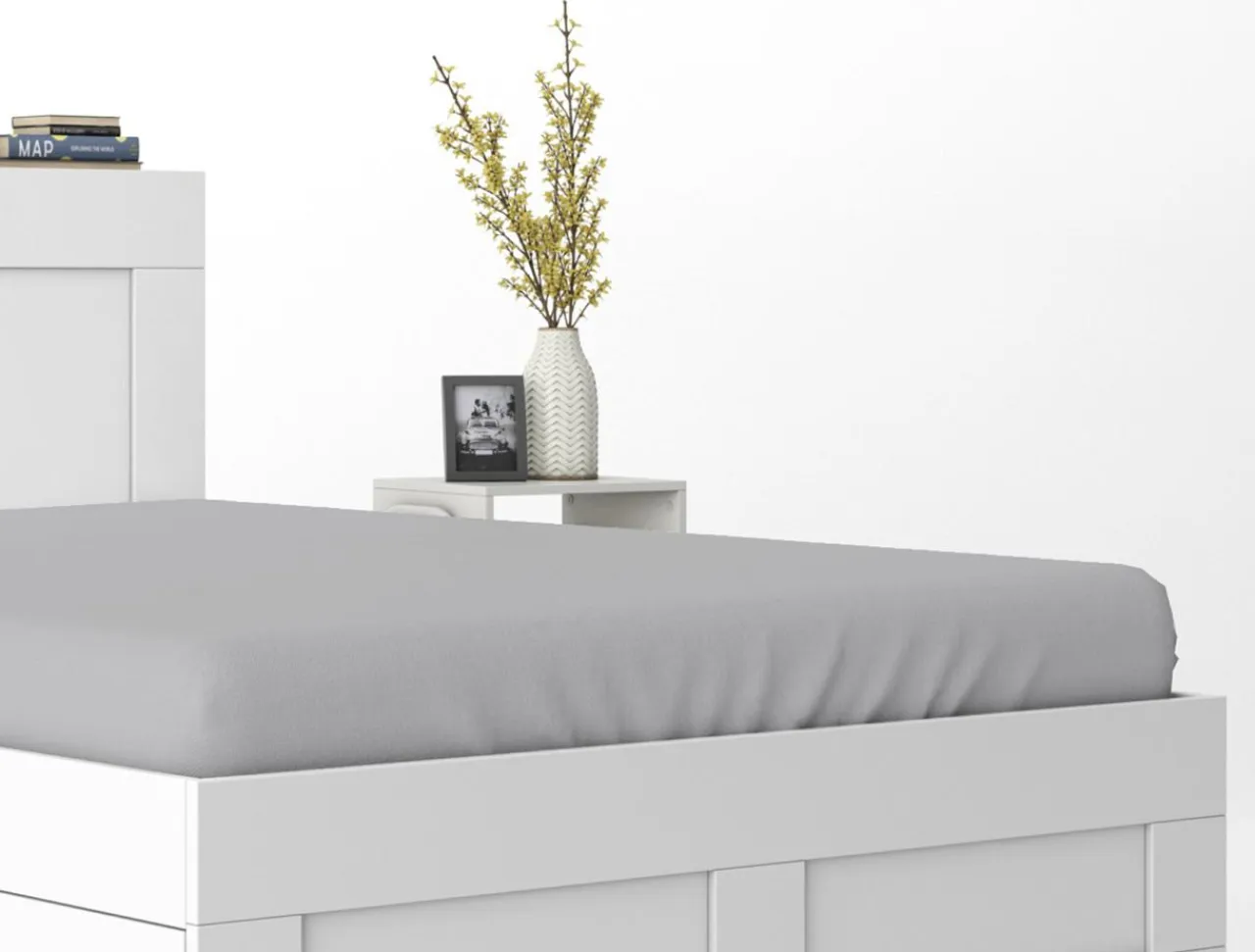 - Minimalistyczna oszczędność harmonizuje przestrzeń. Łóżko będzie wyglądać schludnie i świeżo.