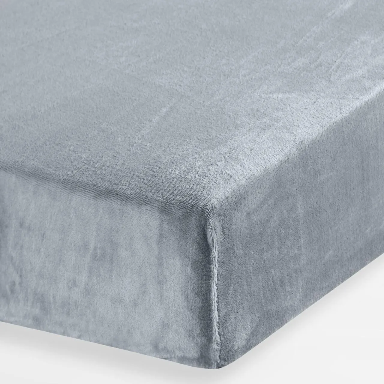 Srebrne prześcieradło FLANO z miękkiego i puszystego polaru – zatrzymuje ciepło, a jednocześnie jest przewiewny, co pozwala na utrzymanie odpowiedniej temperatury podczas snu.