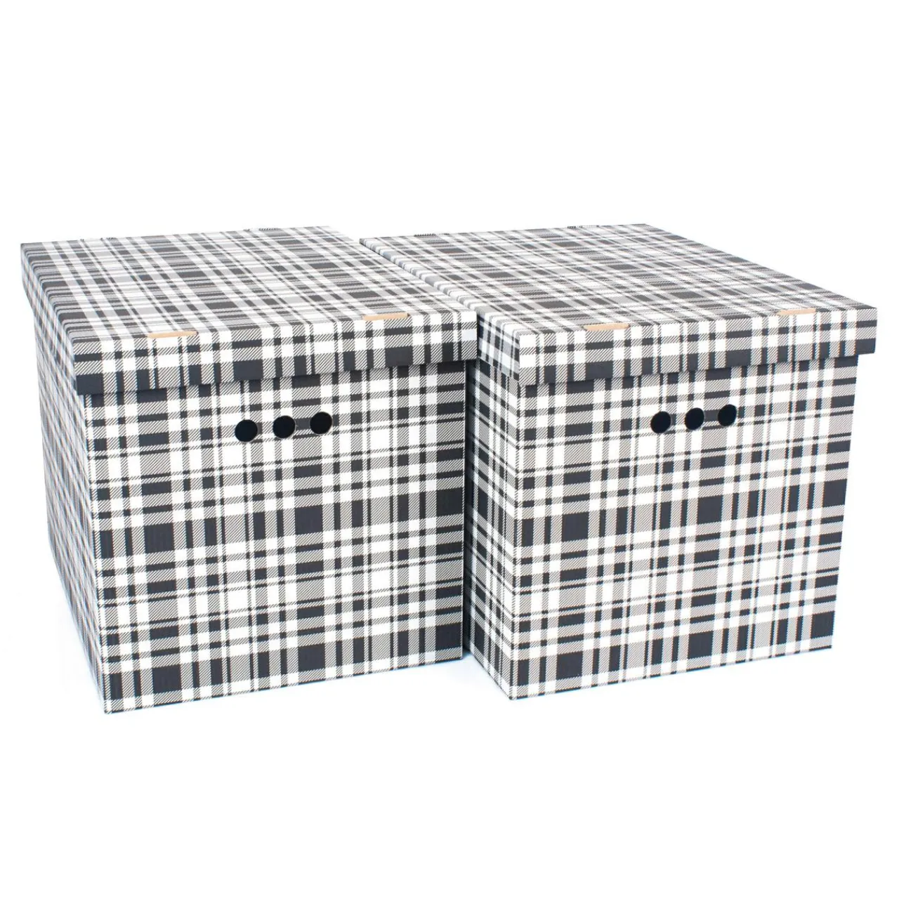 Pudełka I Pojemniki Do Przechowywania| Komplet 2 pudełek tekturowych KRATKA CZARNA XL