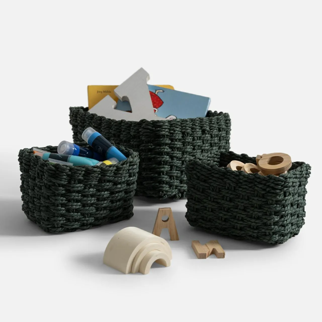 Pudełka I Pojemniki Do Przechowywania|Koszyki Dekoracyjne|inny Komplet 3 koszy do przechowywania, zielony
