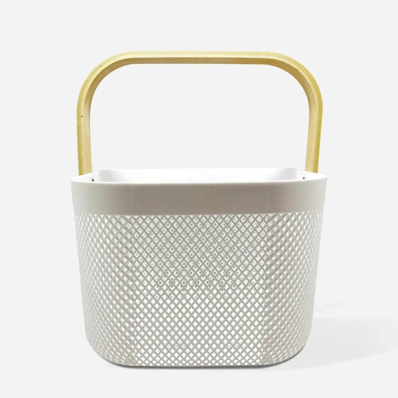 Pudełka I Pojemniki Do Przechowywania|Koszyki Dekoracyjne|inny Koszyk z drewnianą rączką biały 24x24x18 cm