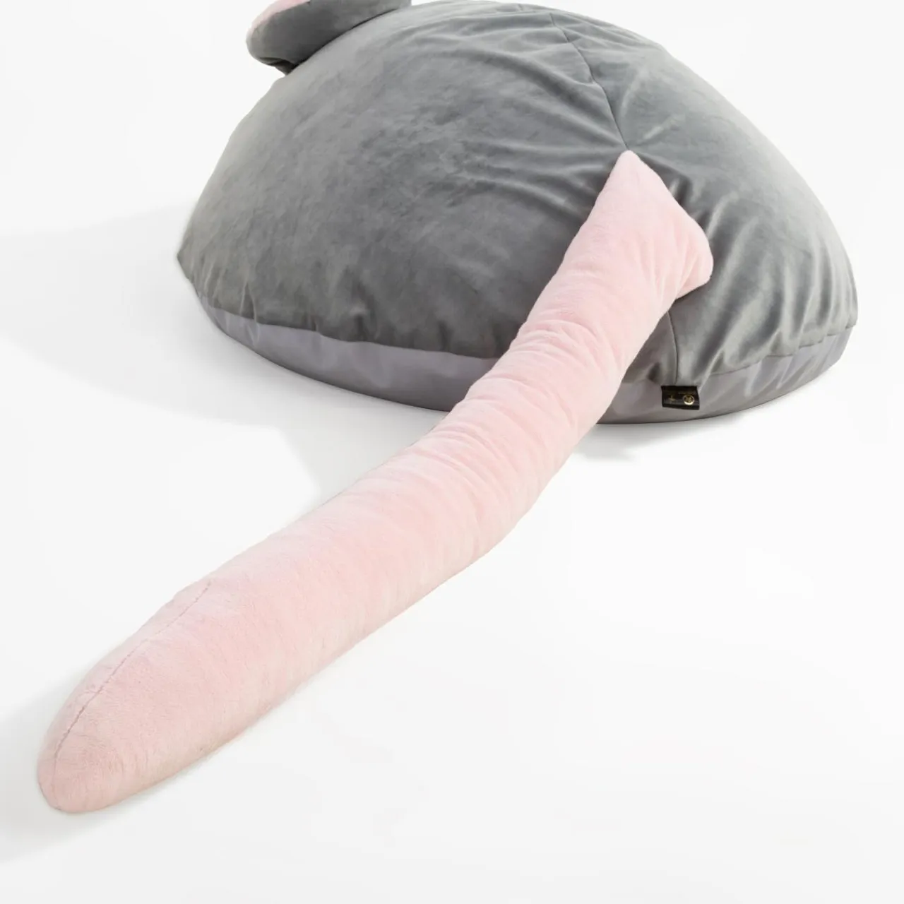 Puf w kształcie myszy to zabawny dodatek do dziecięcego pokoju. Wyposażony w sympatyczne oczka, uszy oraz uroczy różowy ogon zachęca do zabawy i nauki o zwierzątkach.