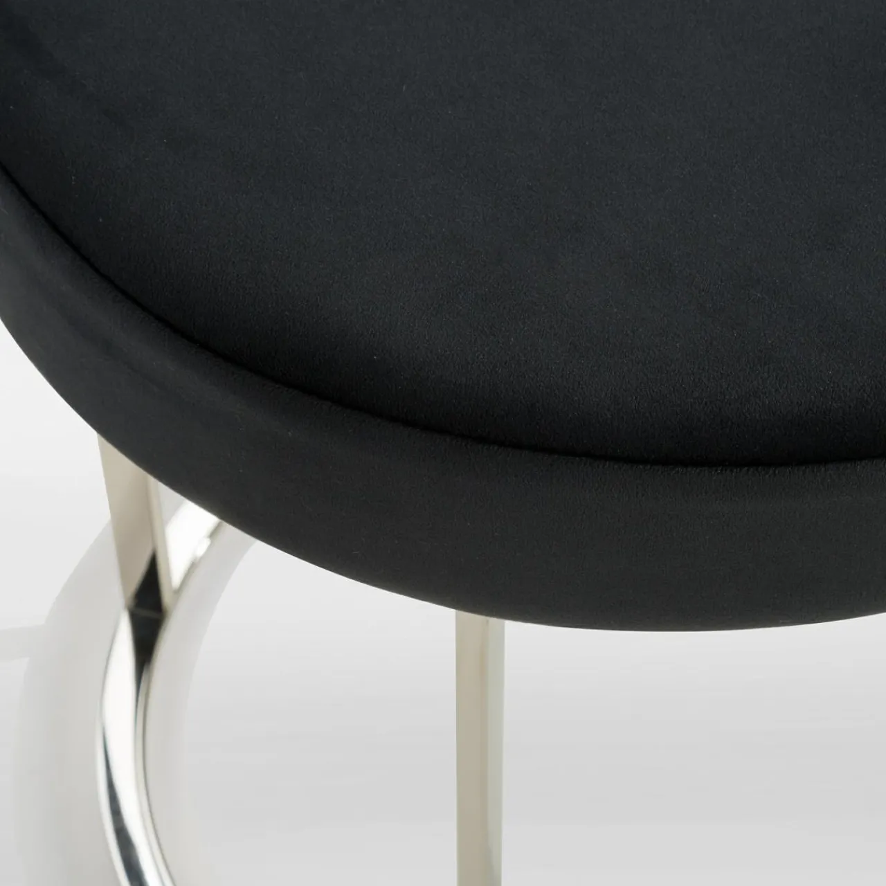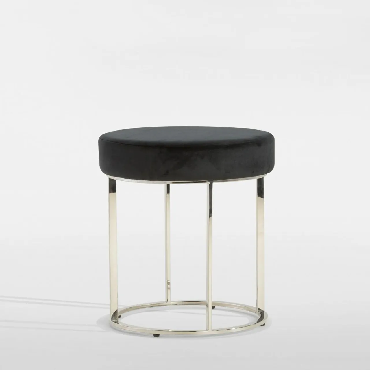 Okrągły puf EZIP sprawdzi się nie tylko w salonie, ale też przy damskiej toaletce. Połączenie czarnego weluru i srebrnej podstawy dopełni eleganckie wnętrze w stylu glamour.