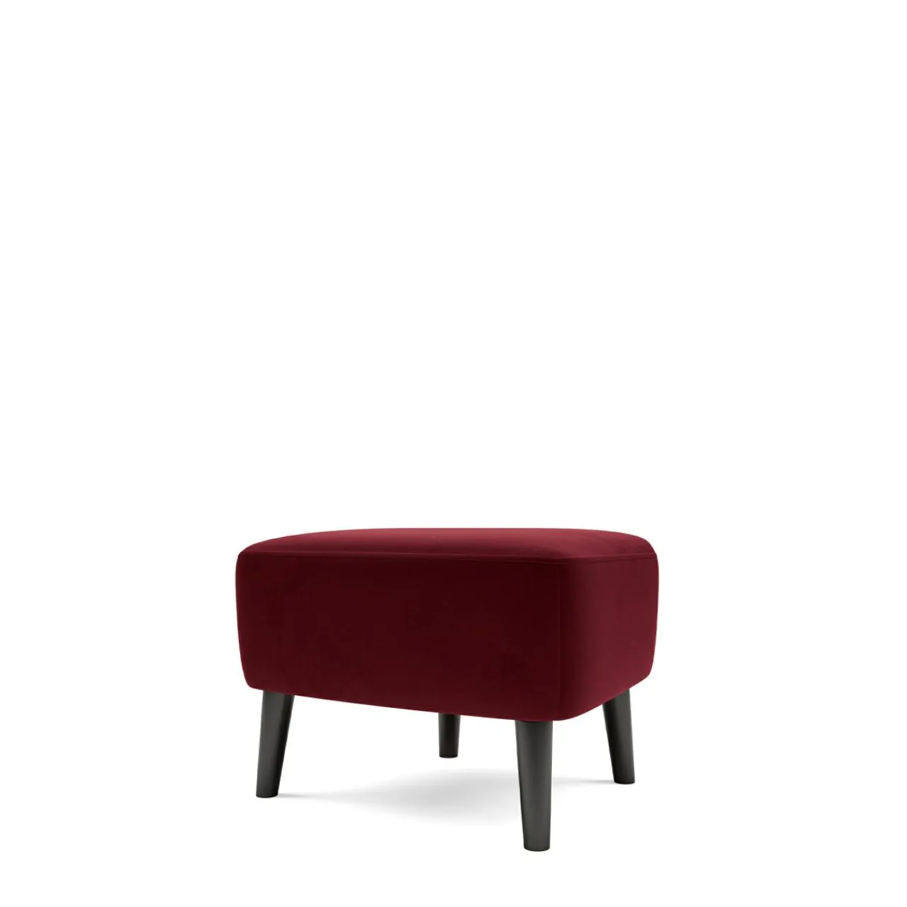 Klasyczna stylizacja mebla kojarzy się z wygodą i komfortem, a tkanina w ciemnym odcieniu czerwieni połączona z czarnymi nóżkami podkreśla jego elegancję i wyjątkowość.