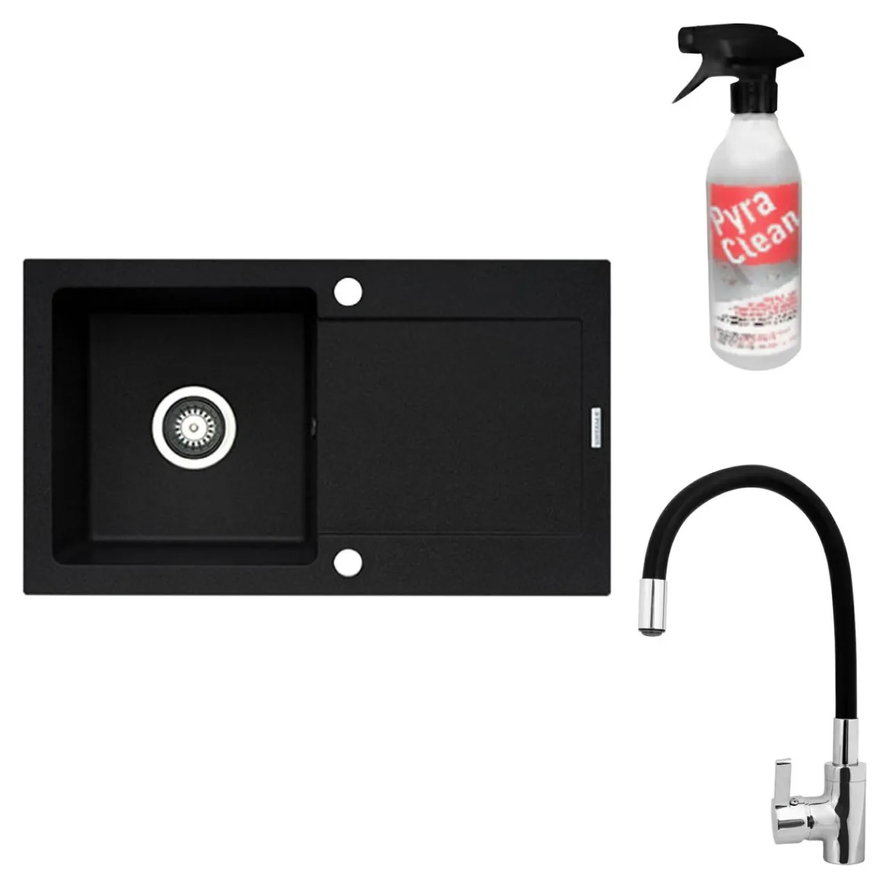 Dodatkowo w zestawie otrzymujesz preparat Pyra Clean do czyszczenia zlewozmywaków granitowych.