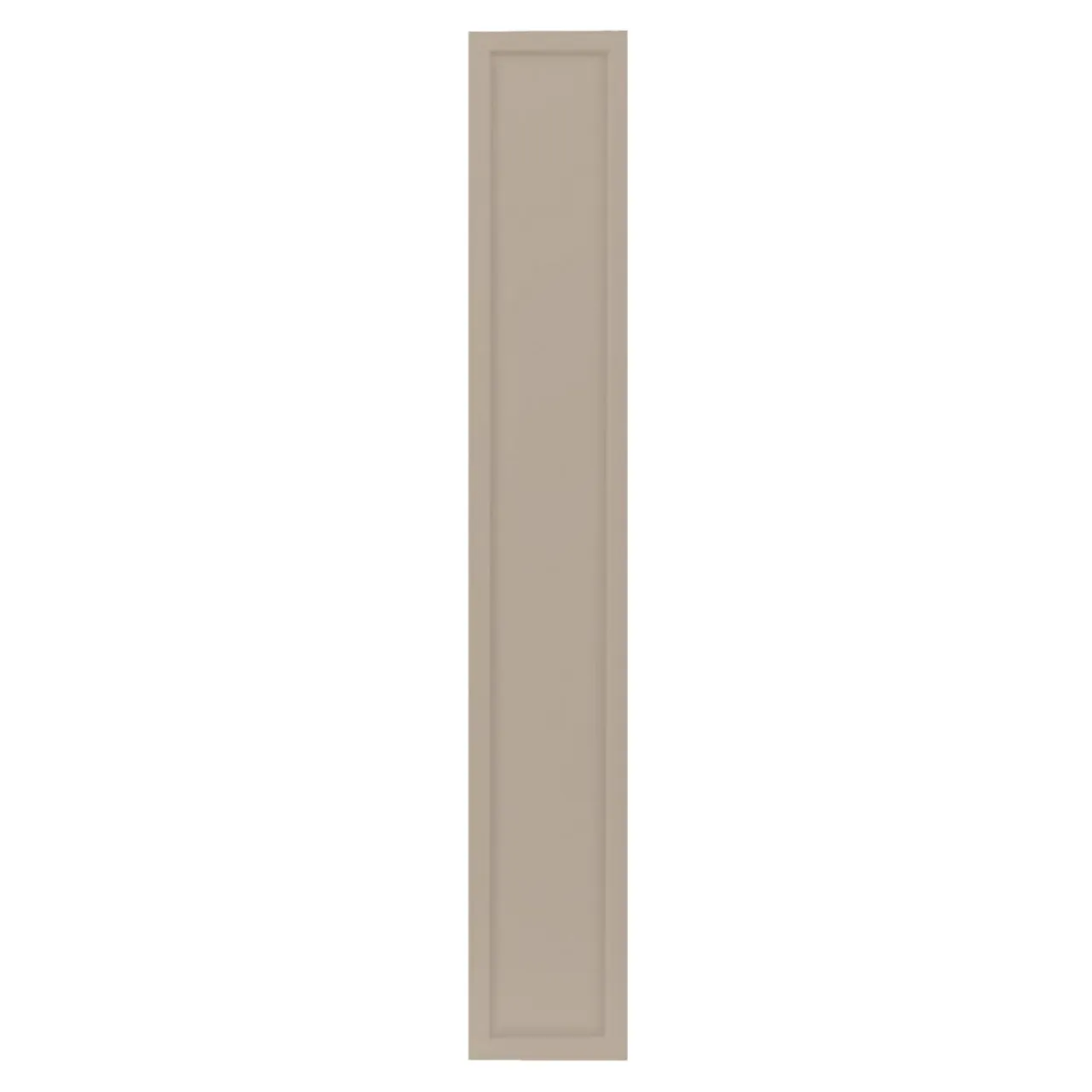 Front drzwi został wykończony folią PVC w szarym kolorze. Jego kolorystyka rozjaśnia optycznie pomieszczenie i doskonale sprawdza się w połączeniu z wnętrzami utrzymanymi w ciepłych barwach z drewnianymi meblami w naturalnych kolorach.