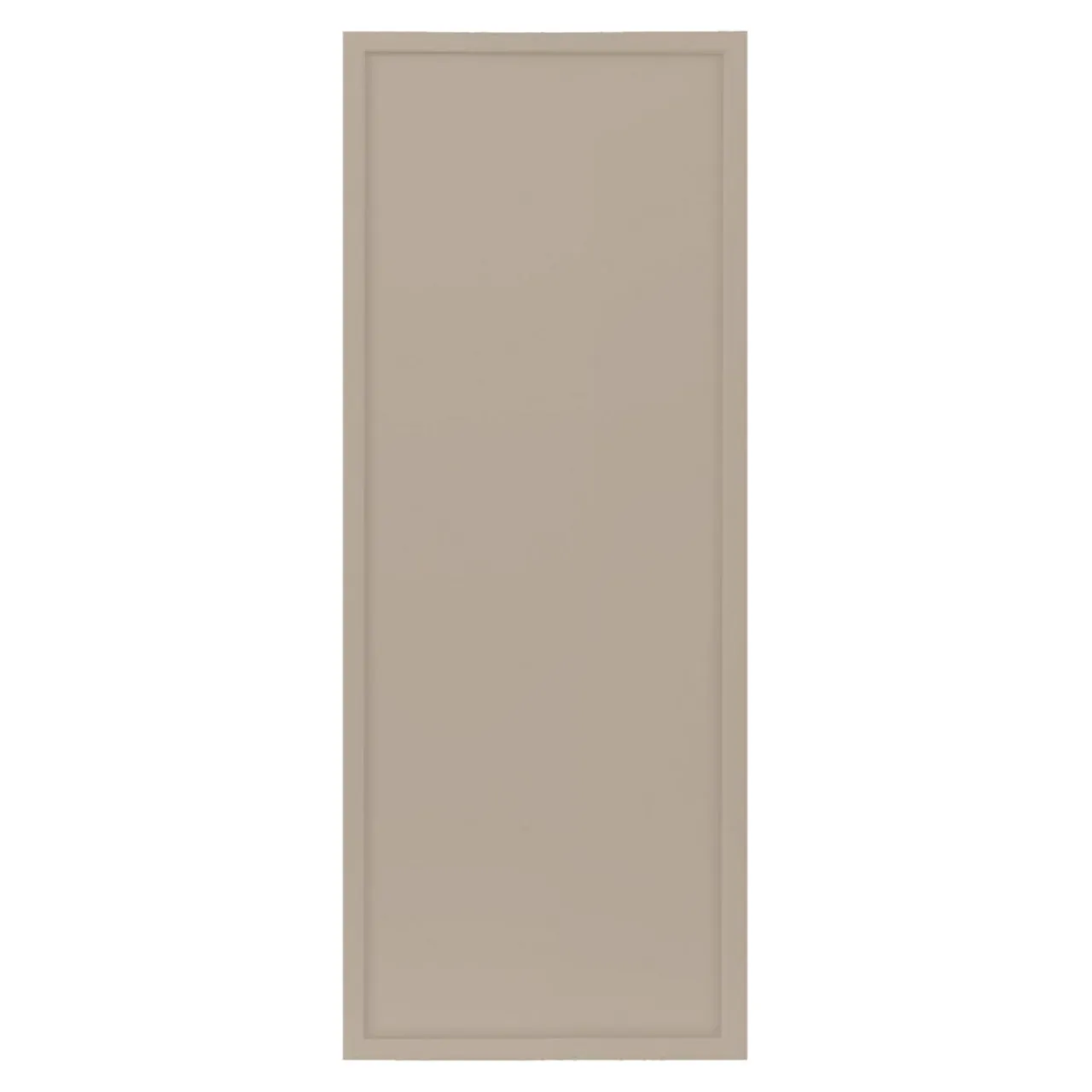 Front drzwi został wykończony folią PVC w szarym kolorze. Jego kolorystyka rozjaśnia optycznie pomieszczenie i doskonale sprawdza się w połączeniu z wnętrzami utrzymanymi w ciepłych barwach z drewnianymi meblami w naturalnych kolorach.