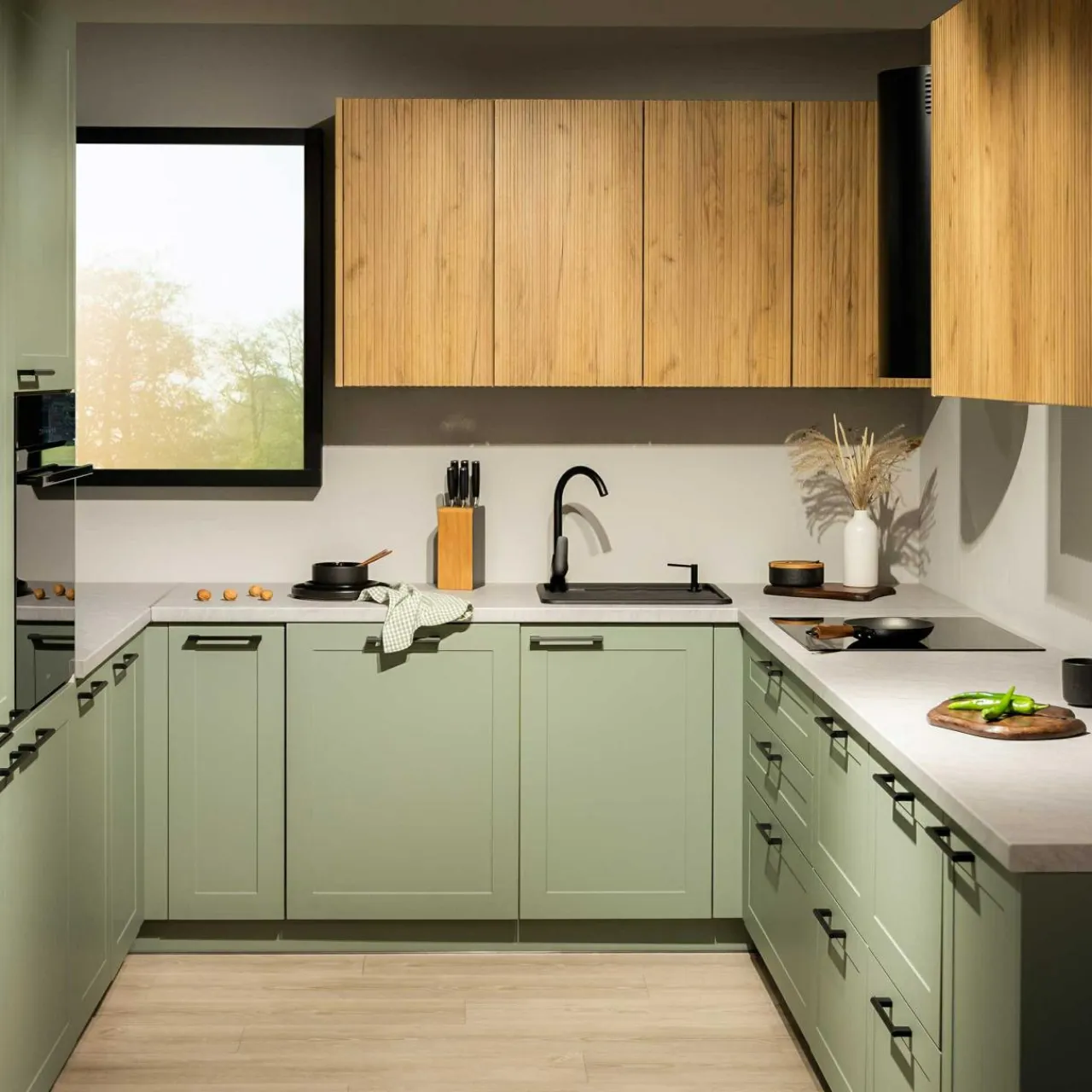 Kuchnia z frontami z kolekcji FRAME w kojącym kolorze szałwii