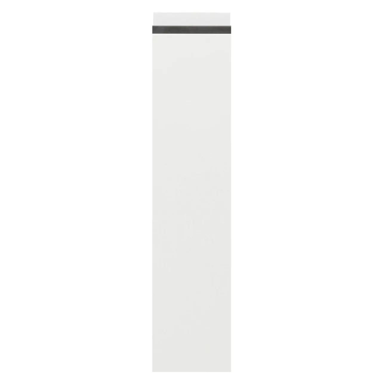 Dekor w białym kolorze z połyskiem sprawia, że front świetnie wygląda w połączeniu zarówno z jasnymi, jak i ciemnymi aranżacjami. Dodatkową zaletą jest uchwyt w formie frezu wykończonego czarną, aluminiową listwą.