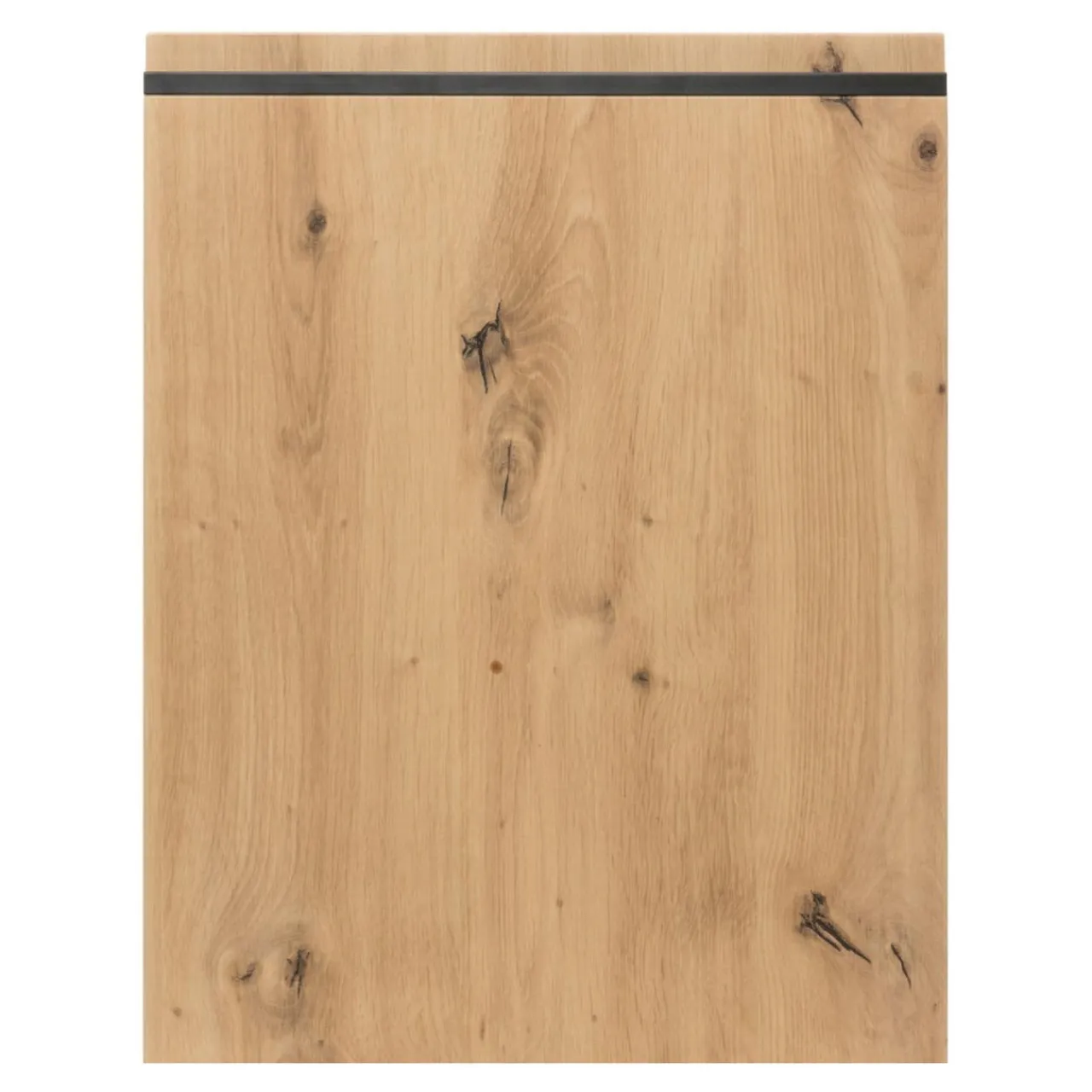 Dekor w kolorze drewna z doskonale widocznym usłojeniem sprawia, że front świetnie wygląda w połączeniu z jasnymi odcieniami bieli i szarości. Dodatkową zaletą jest uchwyt w formie frezu wykończonego czarną aluminiową listwą.