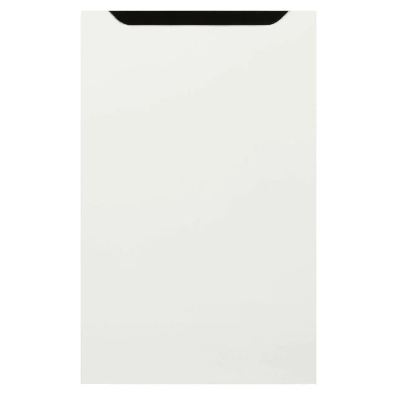 Niewątpliwą jego zaletą jest również łatwość czyszczenia, wysoka odporność na ścieranie. Dekor w białym kolorze z połyskiem sprawia, że front świetnie wygląda w połączeniu zarówno z jasnymi, jak i ciemnymi aranżacjami. Dodatkową zaletą jest uchwyt w formie frezu ze wstawką z czarnego lacobelu.