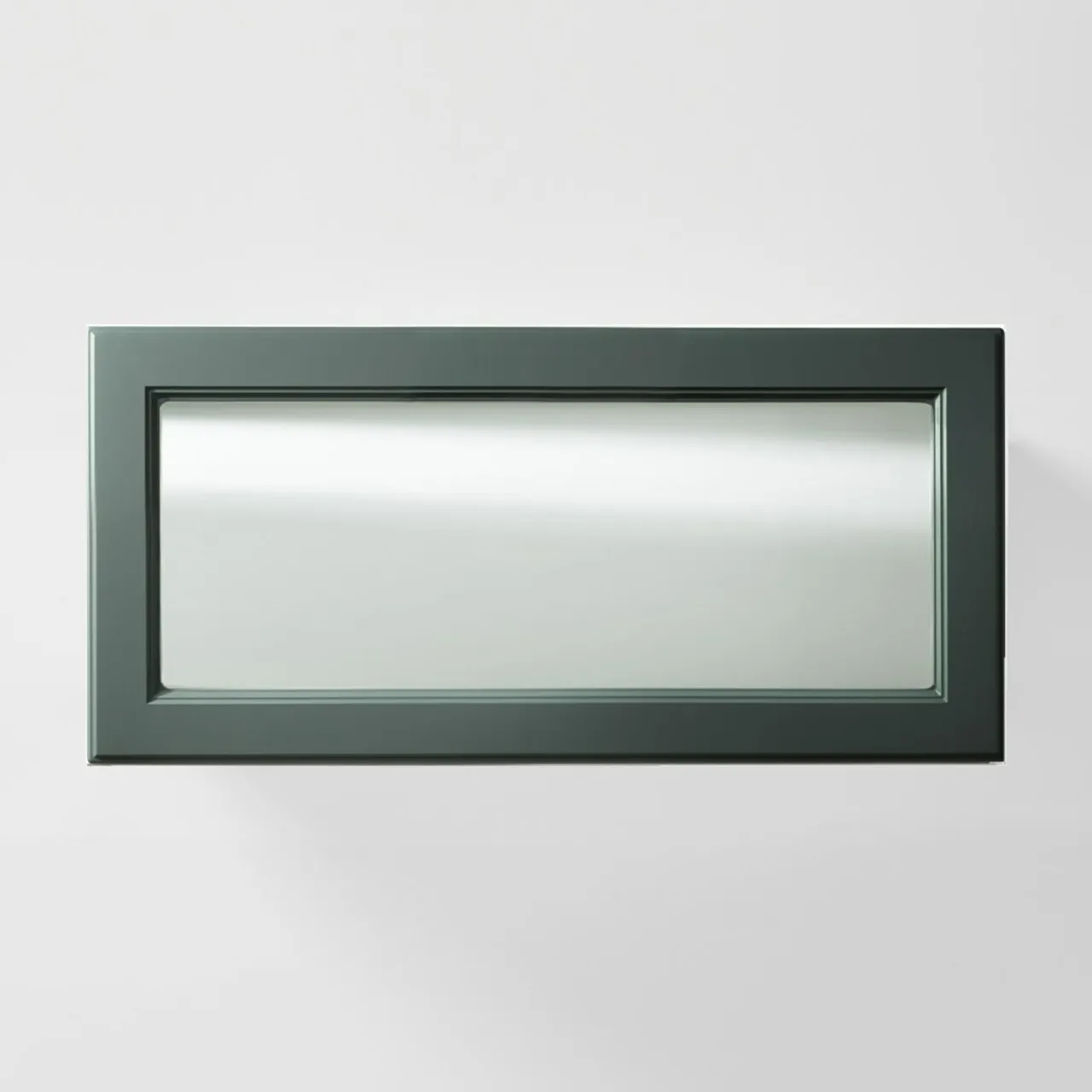 Ramka ze starannie wykonanym zdobieniem doskonale sprawdza się w połączeniu z zabudową utrzymaną w tradycyjnym stylu. We frontach przeszklonych znajduje się szyba w mlecznym odcieniu.