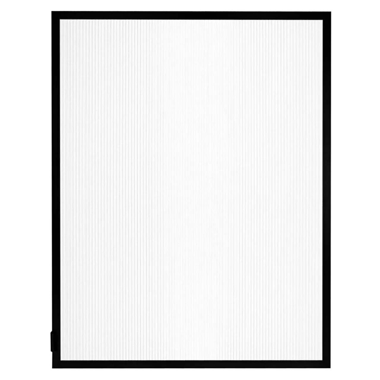 Ryflowana powierzchnia szkła hartowanego wprowadzi do wnętrza ciekawą grę światła i cienia. Czarna ramka frontu sprawdzi się w industrialnej aranżacji wnętrza.